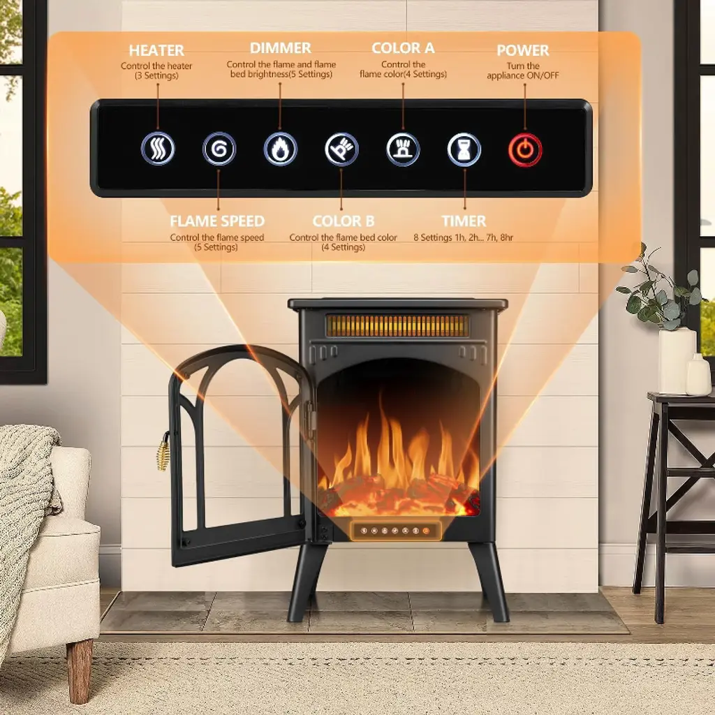 ZAFRO Electric Fireplace: Enjoy mesmerizing realistic flames with customizable colors and speed. Choose 500W or 1500W heating for 100-200 sq ft. Its elegant cathedral design, built with sturdy steel and safety protection, creates a warm, durable, and sophisticated ambiance for your home.