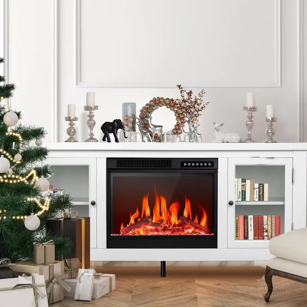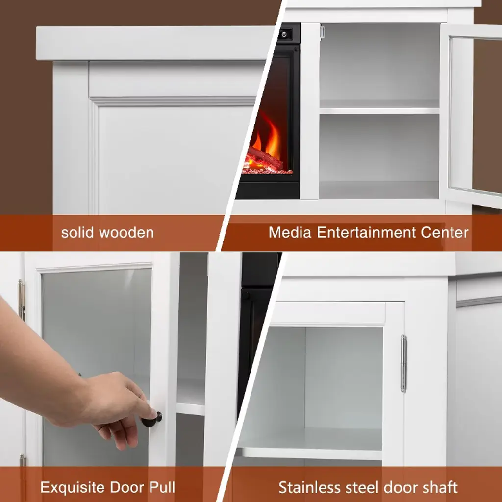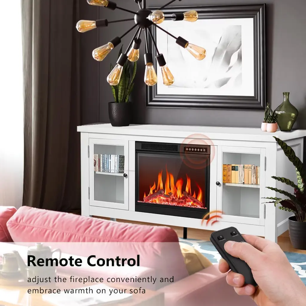 Zafro 58 Inch Glass Cabinet Doors Tv Stand With 23 Inch Electric Fireplace & Media Entertainment Center Console Table For Tv Up To 65 Inch , White