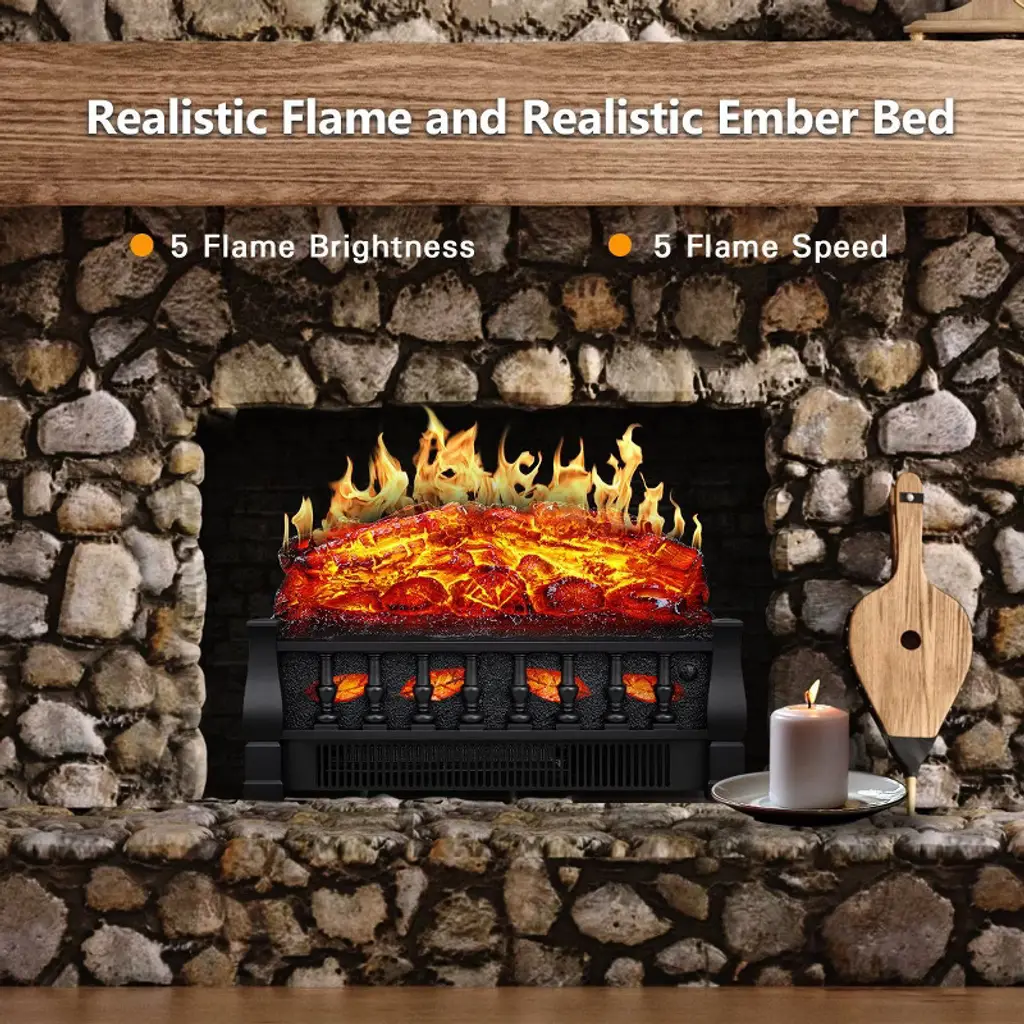 ZAFRO Electric Fireplace ¨C 3D realistic flames & adjustable logs with 750W/1500W heating. 5 flame speeds & brightness levels. Compact vintage design (20.5"L). Perfect for bedrooms, living rooms & offices. Remote control & portable.