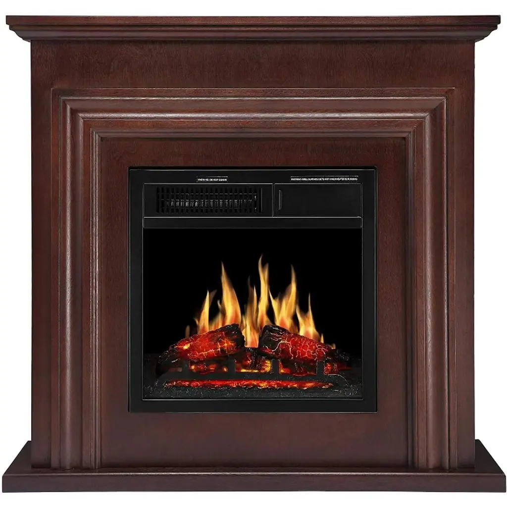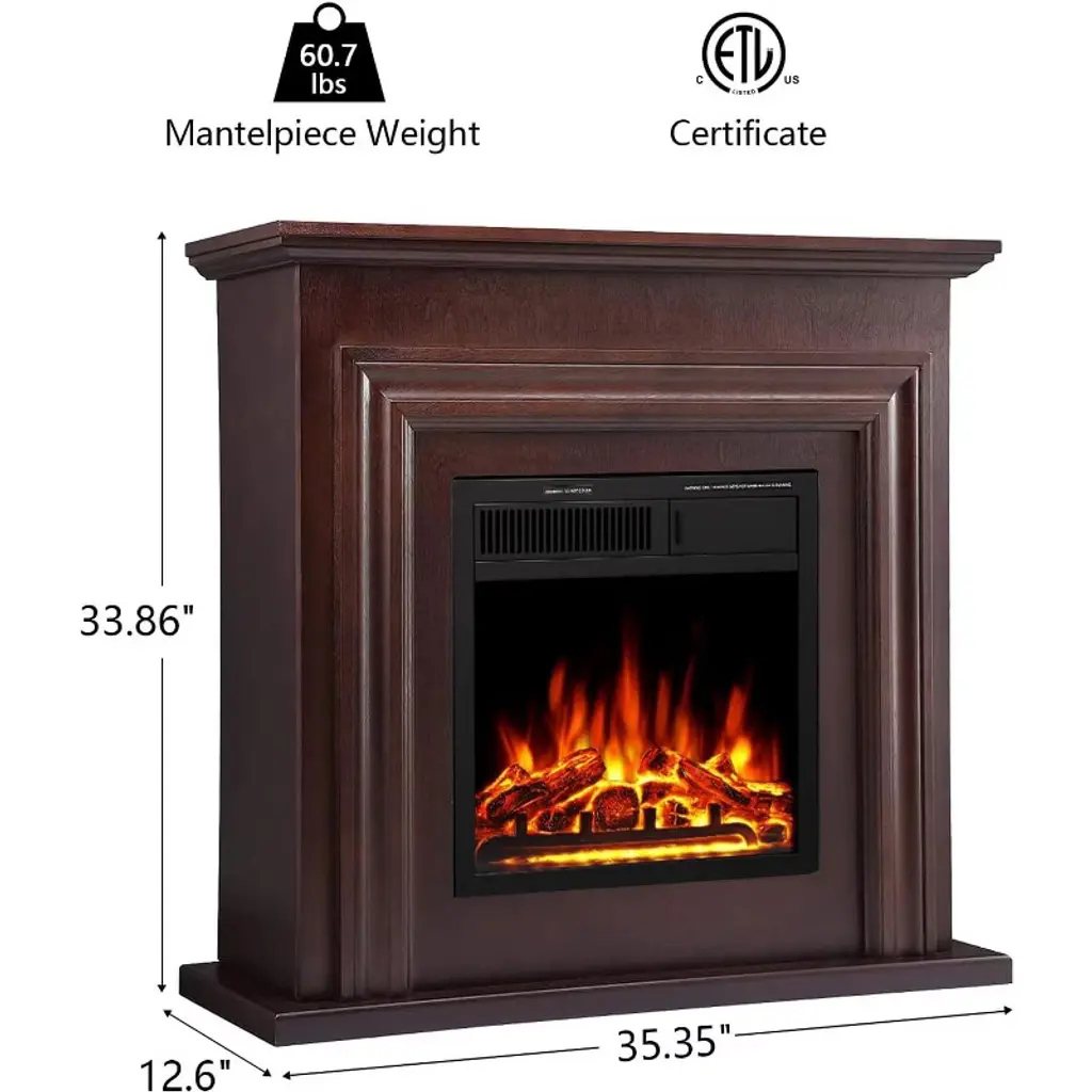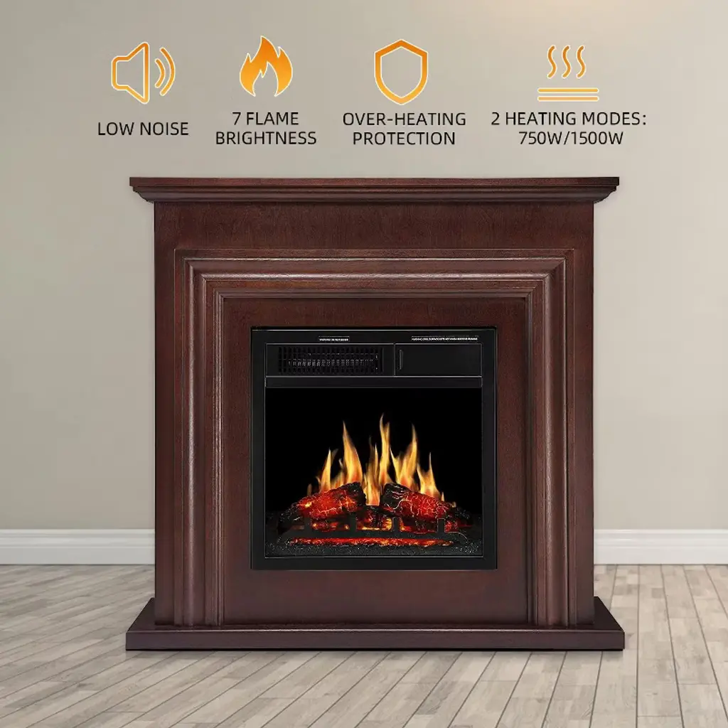 Zafro Electric Fireplace Mantel Wooden Surround Firebox, 36" Brown Tv Stand With Freestanding , Adjustable Led Flame, 750w/1500w