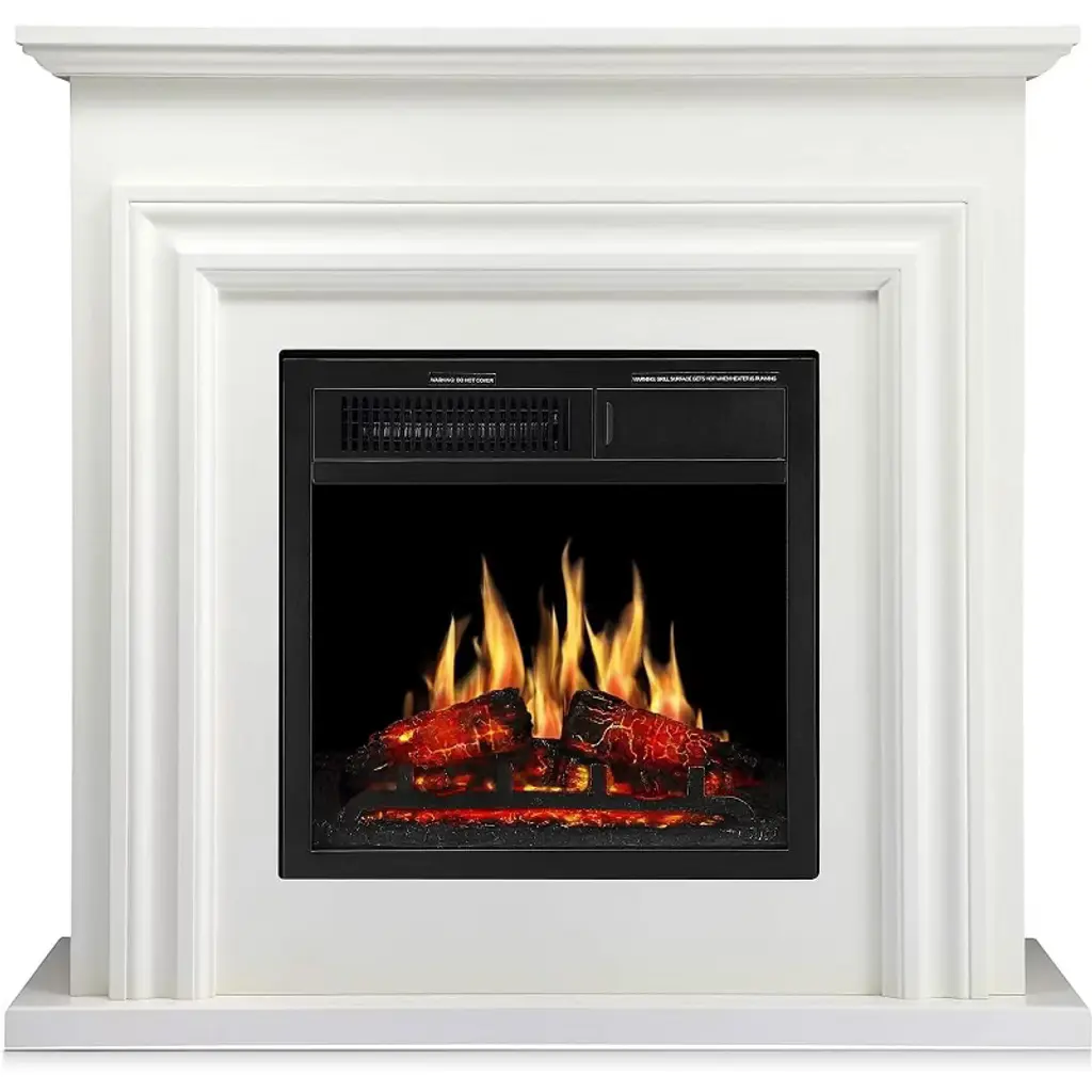 Zafro Electric Fireplace Mantel Wooden Surround Firebox, 36" White Tv Stand With Freestanding , Adjustable Led Flame, 750w/1500w