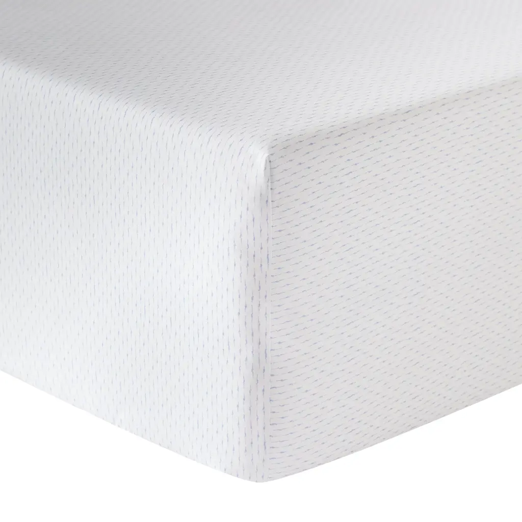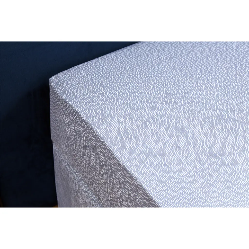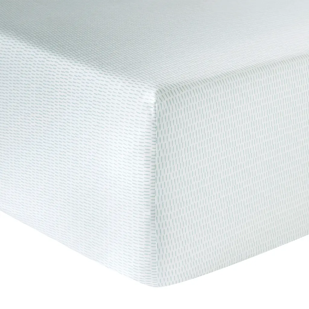 The Amboise Sheets from Anne de Solene offer very chic styling of hand-drawn camellia flowers and foliage in a beautiful palette of blues and greens, all on a pale white-gray ground, coordinated with a geometric design of white pebbles on a blue ground. A contemporary take on classic blue-and-white design.