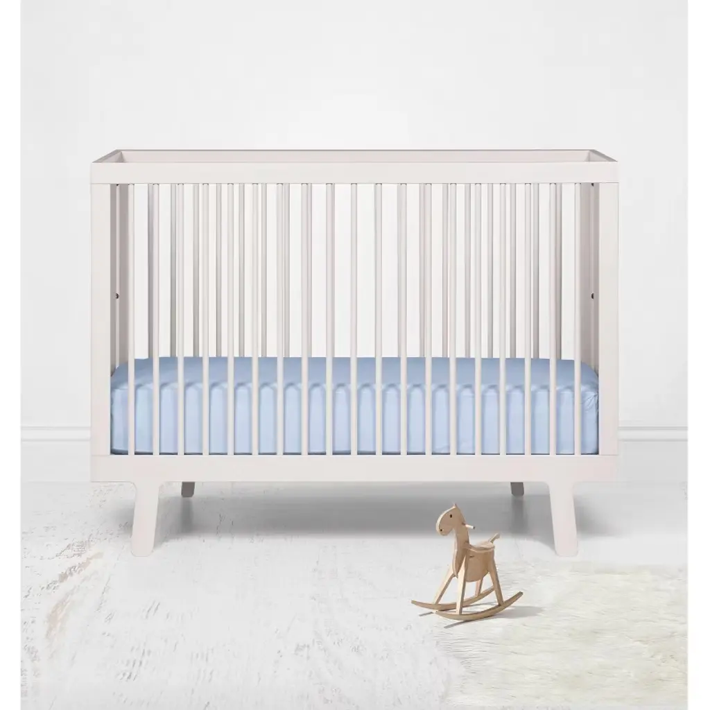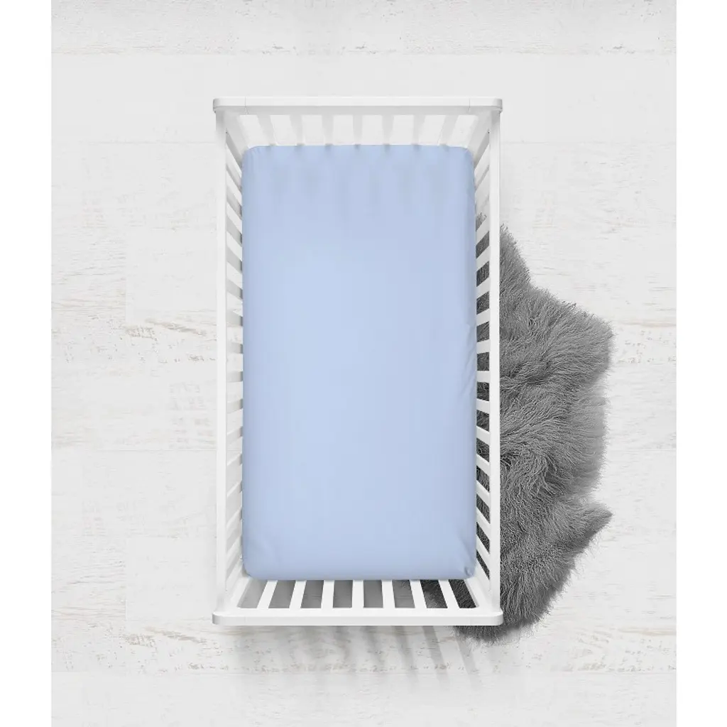 Bacati - Solid Light Baby Blue Crib Fitted Sheet made from 100 percent cotton percale fabric. Create a cozy and stylish nursery with Bacatis Premium 100% Cotton Percale Crib Sheets, designed to keep your baby comfortable all night long. Crafted from breathable, natural cotton, these fitted sheets feature a smooth, crisp feel that becomes softer with every wash. Measuring 52" x 28" x 7", they fit snugly on standard crib and toddler mattresses, ensuring a secure fit for a safe sleep environment. Certified to OEKO-TEX standards, these sheets are free from harmful chemicals and printed with azo-free dyes, making them gentle on delicate skin. Available in a variety of vibrant colors and Bacatis signature playful prints, these sheets add a charming touch to your nursery decor. Pair them with coordinating Bacati bedding and dcor for a complete look. With durable construction and thoughtful design, these crib sheets are made to withstand everyday use, offering a practical yet stylish solution for your little ones bedding.