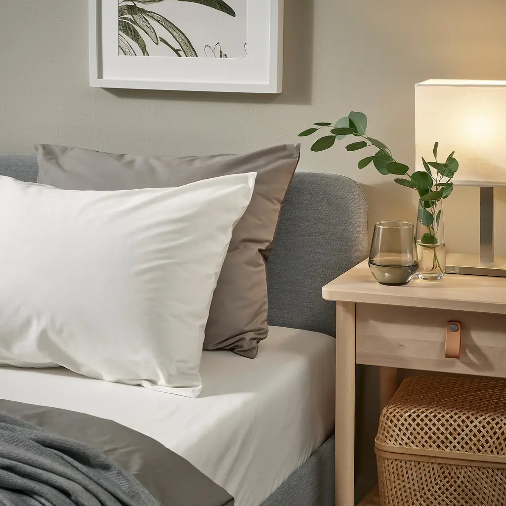 BALSAMPOPPEL Fitted sheet - white Twin. Comprises of 100% organic cotton certified by GOTS - the Global Organic Textile Standard. Cotton is a soft, natural material that breathes, absorbs moisture and feels comfortable against your skin. Thread count: 60 threads/cm² or 152 threads/inch².