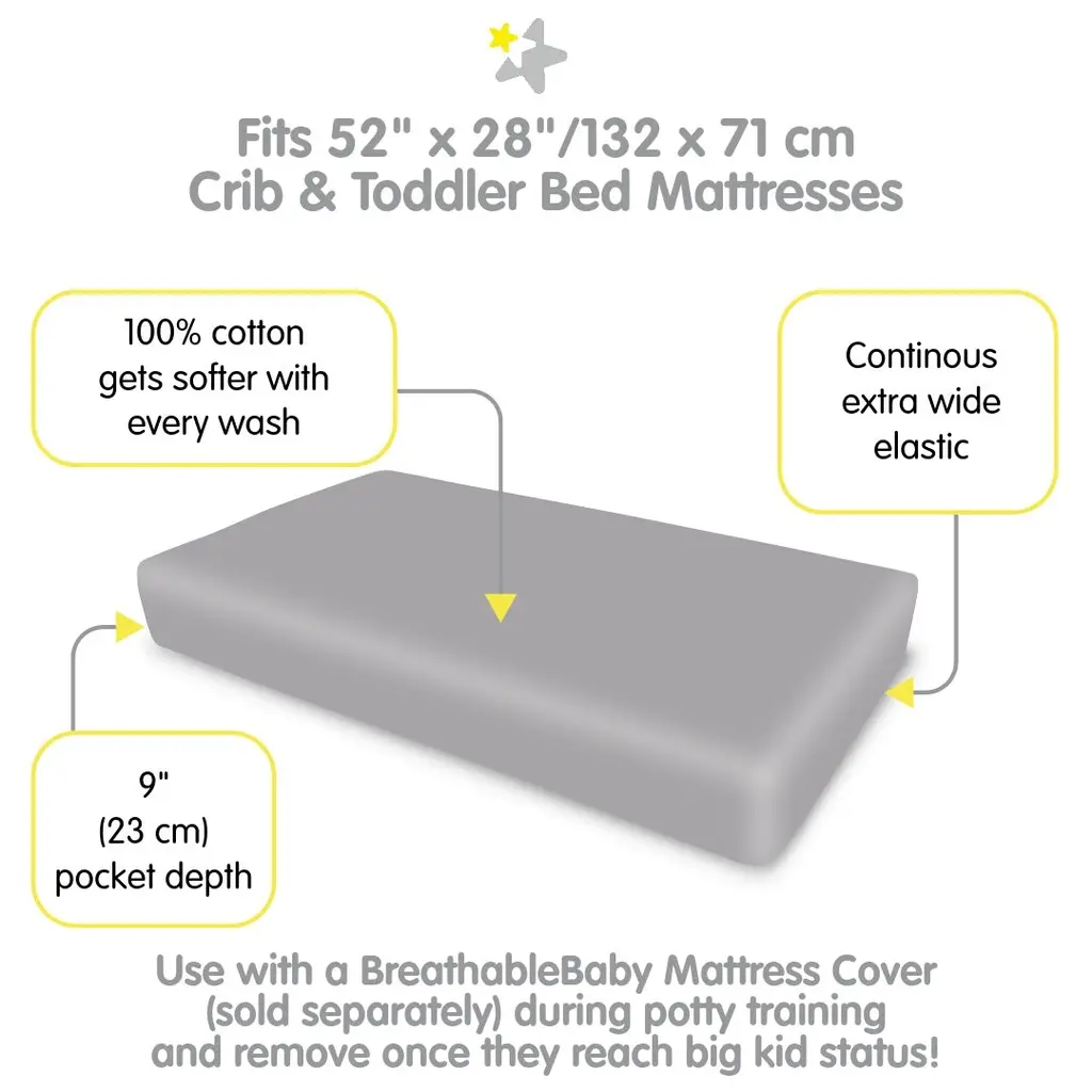 Breathablebaby Cotton Percale Fitted Sheet, For 52" X 28"/132 X 71 Cm Crib & Toddler Bed Mattress, Solids (2-Pack) - Gray