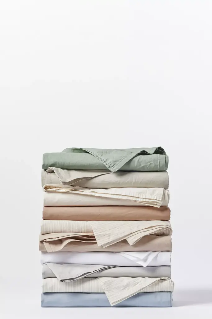 To create our softest, most relaxed percale yet, we loomed pure organic cotton with varying tension on the yarns, and then washed the woven fabric to create a lightly crinkled effect all over. The result is what may be our favorite sheeting yet: breathable, comfortable, beautifully rumpled sheets that wash and wear well over time. Exclusive to Coyuchi, the fabric is perfectly broken in right out of the box and just right for every season. Sheet set includes one fitted and one flat sheet plus two pillowcases (one pillowcase for Twin set).Coyuchi produces high-quality linens from minimally processed natural and organic fibers in responsible and ethical factories. With a relaxed palette inspired by the coast, Coyuchi products are crafted without compromise to design, comfort or the planet. * 100% Organic Fair Trade Cotton* Machine washable. Wash on delicate cycle with like colors, cold water and a plant based detergent. Whiteners not recommended. Only use non-chlorine bleach. Line dry or tumble dry low. * Imported#### *Dimensions** Twin: 15" x 39" x 75"* Full: 15" x 54" x 75"* Queen 15" x 60" x 80"* King: 15" x 78" x 80"* Cal King: 15" x 72" x 84"
