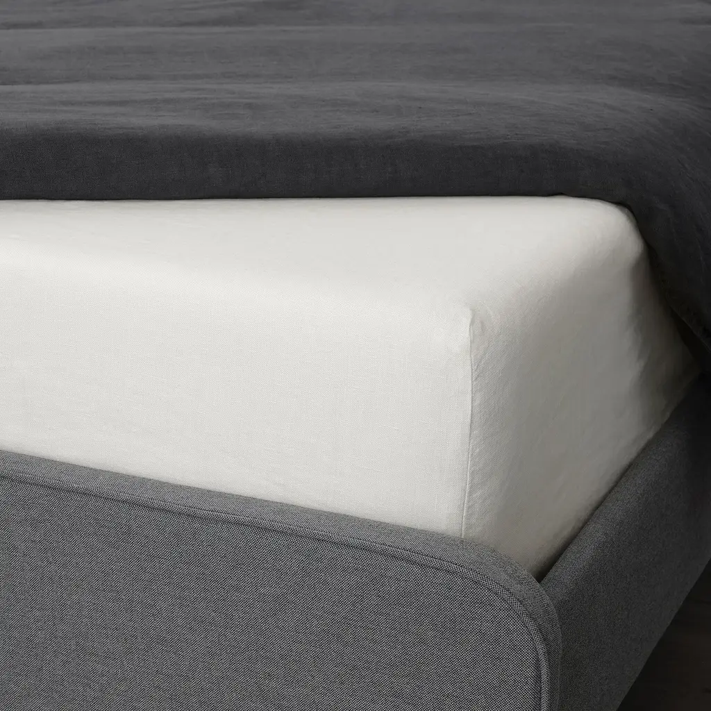 DYTÅG Fitted sheet - white Twin. The sheet fits over the corners of your mattress and stays in place thanks to the elastic edging. No more crumpled sheets in the morning so making your bed is a breeze. Fits mattresses with a thickness up to 14" since the fitted sheet has elastic edging all around.