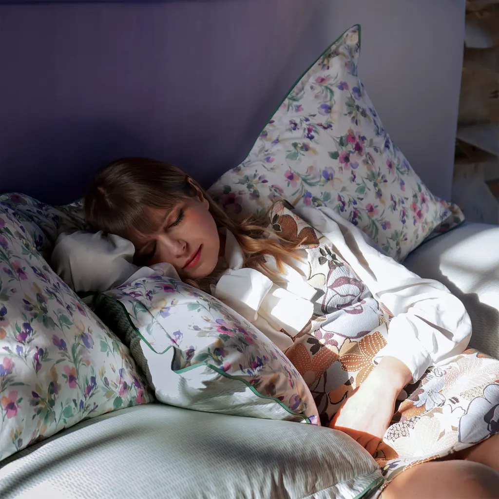 Enchantement is a romantic watercolor design of pansy flowers coordinated with a contemporary design of small lines. The soft color palette, on a white ground, imbues a sense of peace and relaxation.