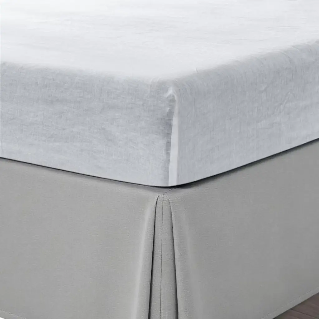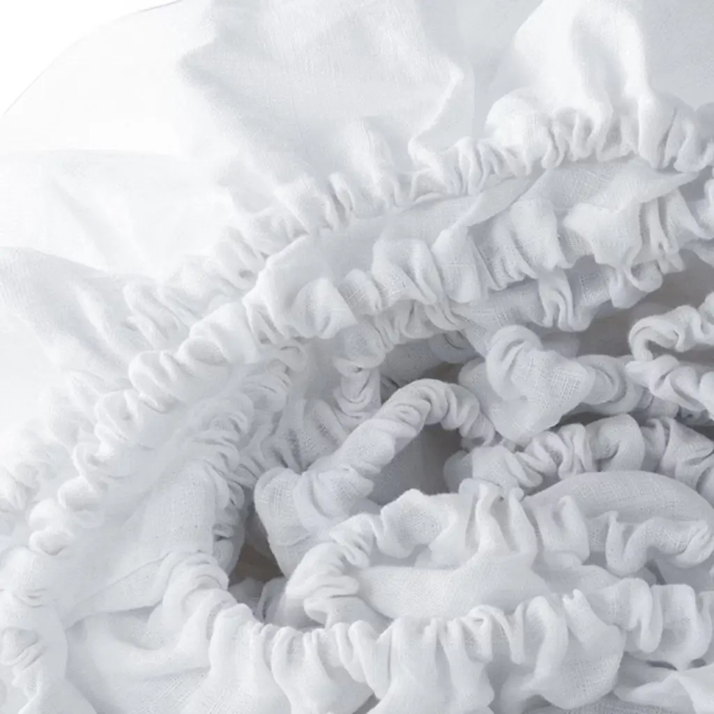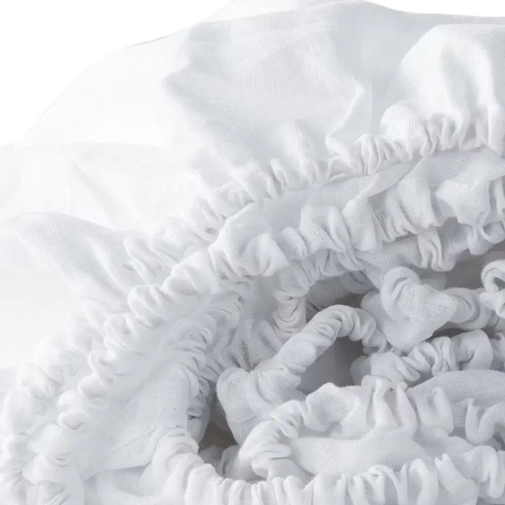 Sleep like royalty every night with this white linen king fitted sheet. Crafted from premium quality linen that is known for its moisture wicking properties to keep you cool and comfortable, these sheets are a luxury but so worth it. They are breathable, have a soft thick texture that will get softer over time, and are wrinkle resistant (not wrinkle free). Crafted with care for a peaceful night’s sleep. 16-inch H x 80-inch W x 76-inch D