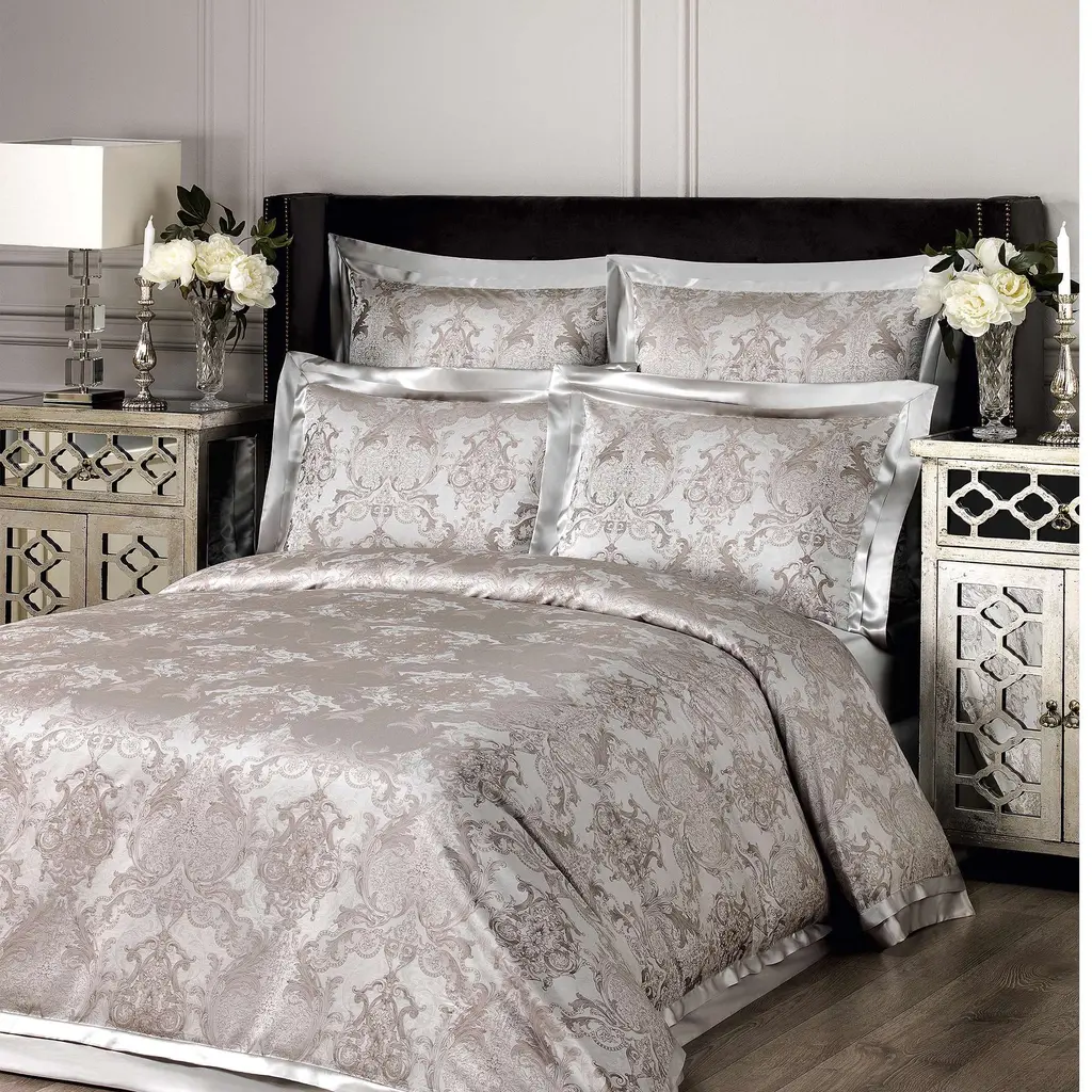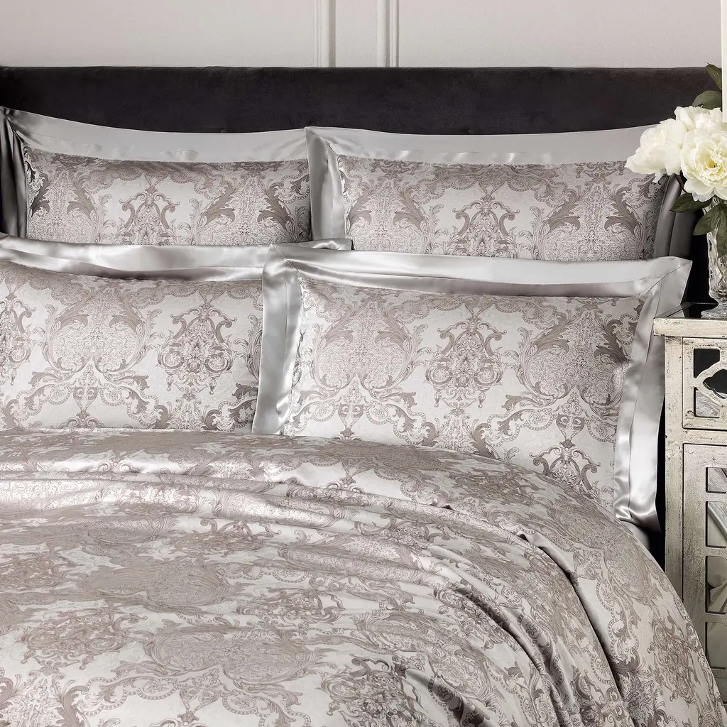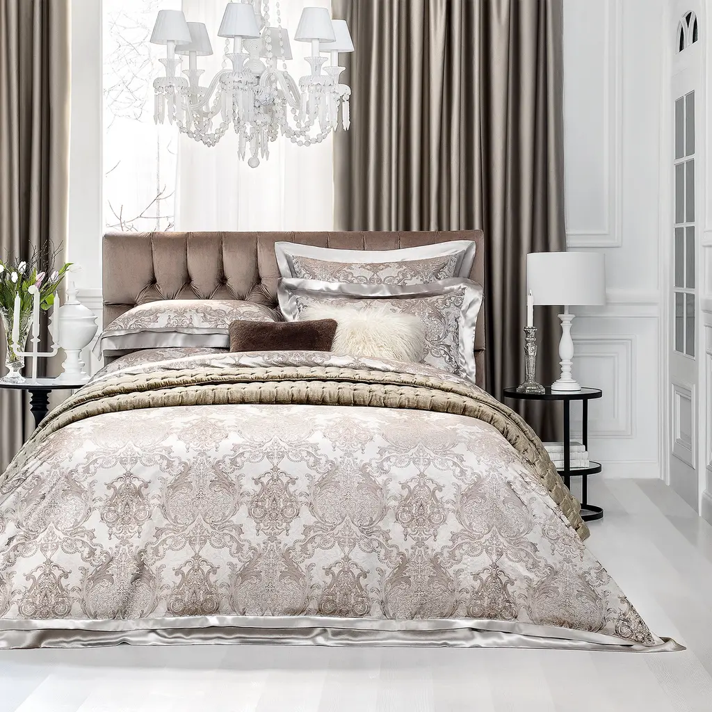 This luxurious bedding set is decorated with Byzantine ornament, which combines both Hellenistic and eastern traditions, including elements of a spectacular damask pattern.