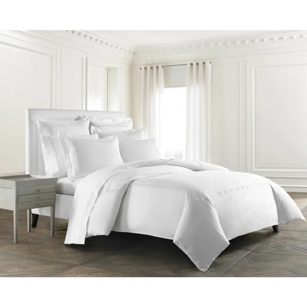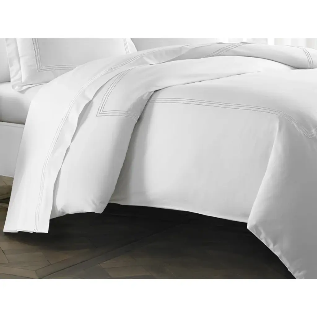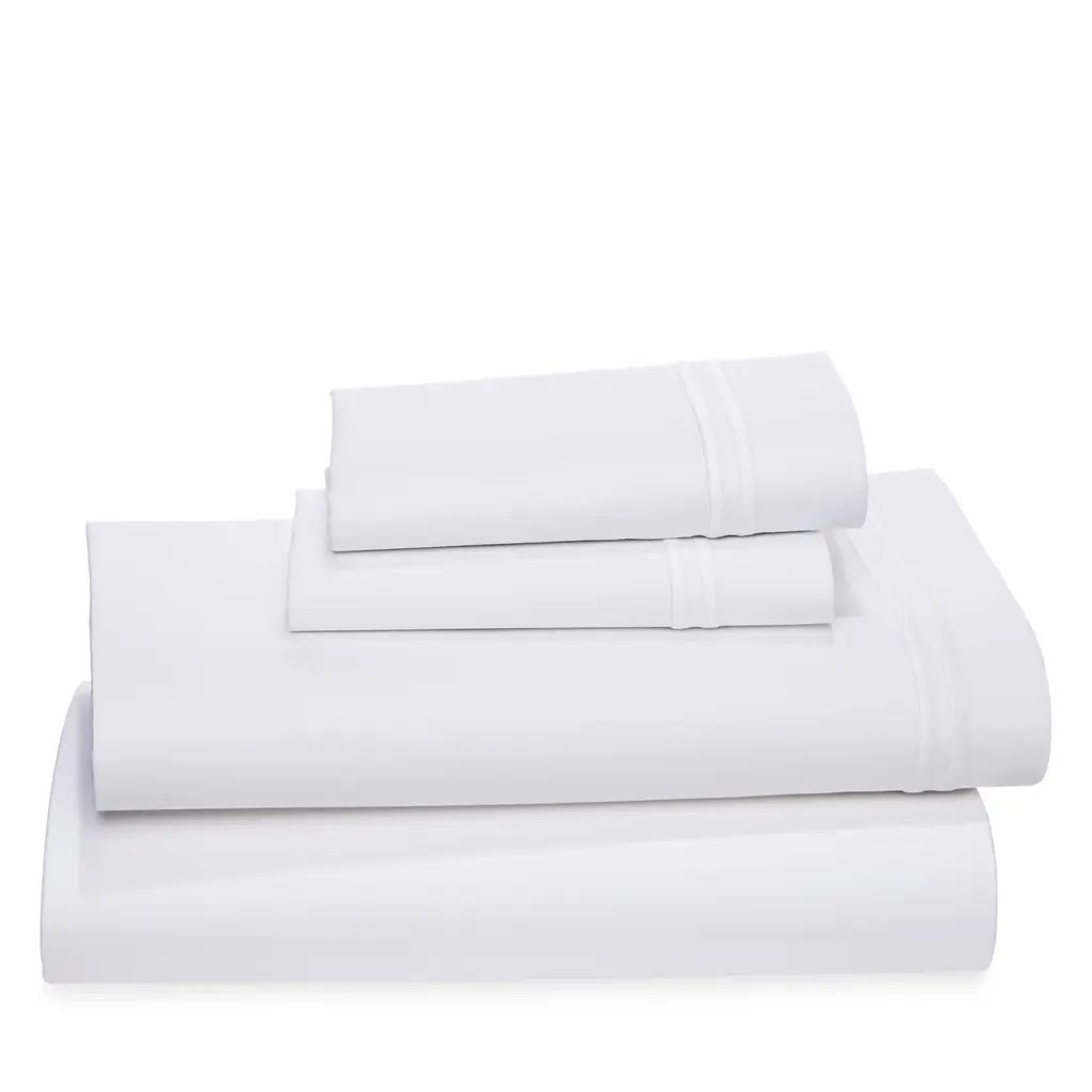 This fitted sheet is a sure way to freshen up your master suite or guest room bed with its embroidered triple-stripe design. It's made with a 300-thread-count percale in a cotton blend for just the right amount of coolness and breathability, which we know you'll appreciate. We love that this fitted sheet's classic style is equally at home with a farmhouse, traditional, or coastal decor. Best part of all, cleaning it is a cinch: Simply toss it in the washer when it needs some freshening up.