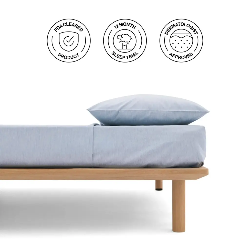Get snug with AIZOME's Organic Fitted Sheet – where comfort meets synthetic chemical-free quality! Made from 100% organic cotton and boasting a luxurious sateen weave, it's the secret ingredient for dreamy nights. Hypoallergenic and colored with nature's own palette, like indigo and madder, these sheets are not just a fit for your bed, but a perfect fit for the planet too. Feel the AIZOME difference for yourself. If you are looking for an elastic-free bottom sheet, check out our Elastic Free Bottom Sheet.