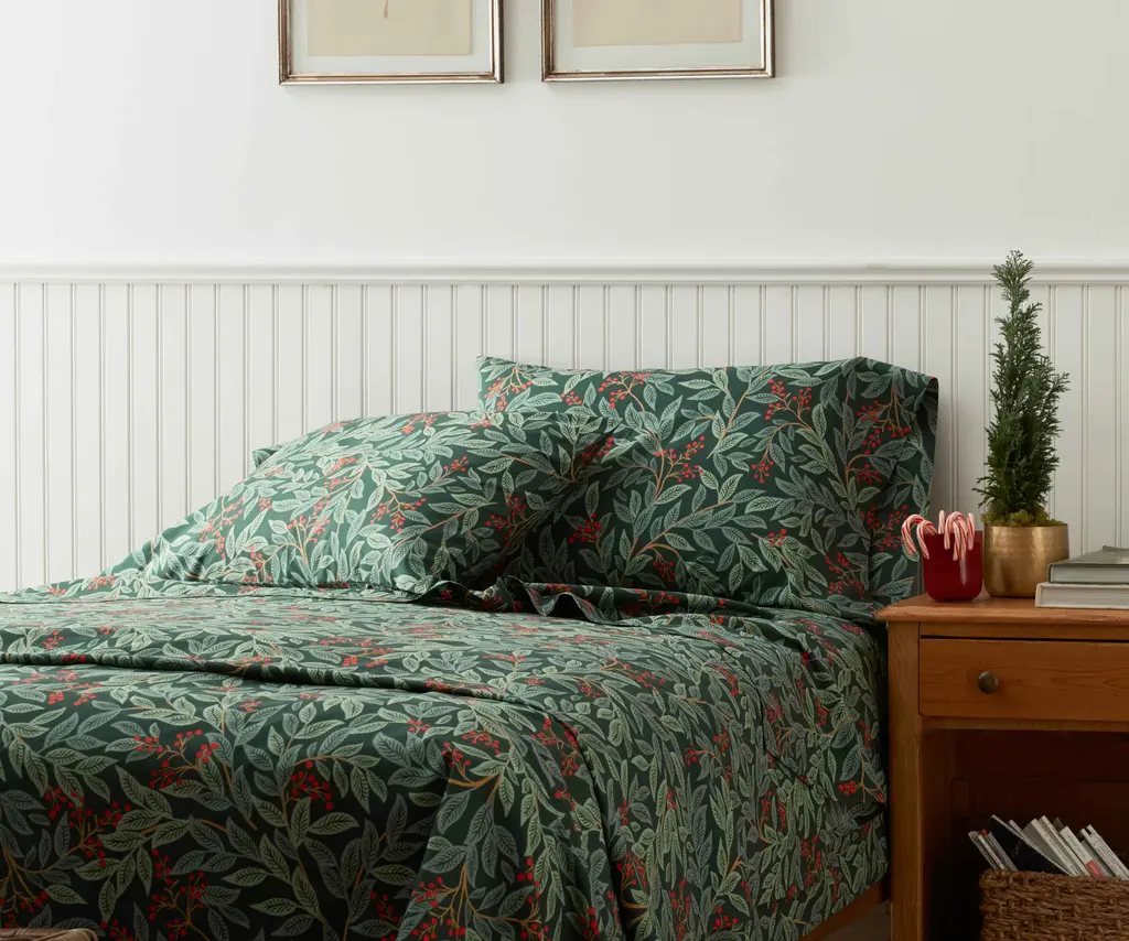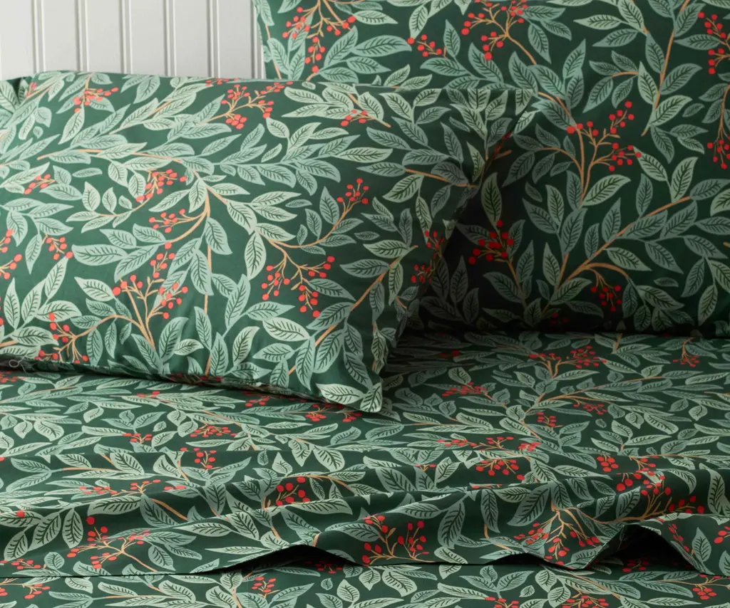 Lush and verdant, Willowberry features vines of greenery that are dotted with festive, red berries. This breathable and crisp percale bedding collection is an excellent choice for year-round use. Complete your bed with the coordinating pillowcases, duvet cover, comforter, or accent pillows. Part of the Rifle Paper Co. x The Company Store collection.