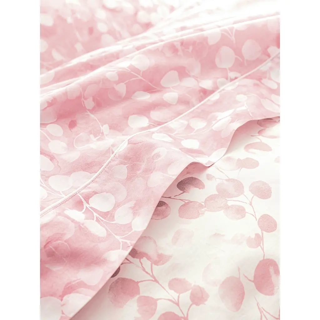 The softness and watercolor transparency of the Honesty flower are played out on a delicate superposition of light and shadow. The sheets offer formal, airy, evanescent lightness on sumptuously soft sateen. This stunning botanical design of Honesty flower seed pods has a contemporary, sophisticated vibe. It's a chic, somewhat abstract design combining two prints - one of Honesty seed pods on a white ground and one of white printed Honesty seed pods on a colored ground. If one does not already know or recognize the print to be that of seed heads, then the Rosée design looks like a design of stylized contemporary forms.