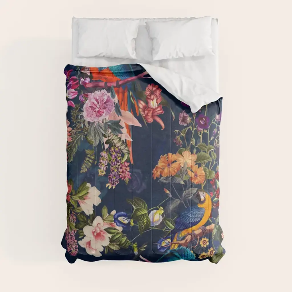 Sheets featuring a sophisticated scene of peacocks perched among winding branches and blooming flowers, designed to pair with the coordinating duvet cover, comforter , and accent pillows. Crafted of buttery-soft and breathable sateen, this bedding collection has a subtle sheen and beautiful drape that's perfect for all-season comfort. Part of the Rifle Paper Co. x The Company Store collection.