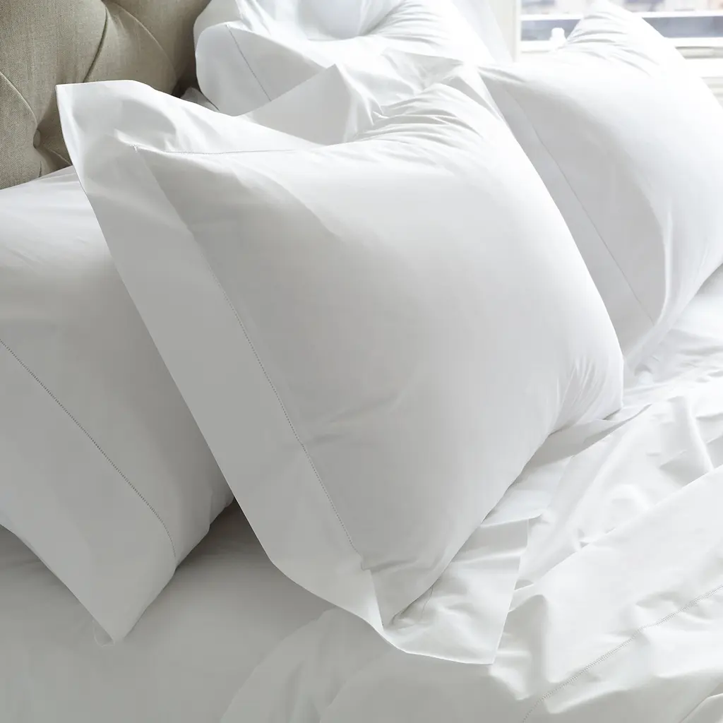 Crafted in crisp 350-thread count cotton percale, these luxurious sheets from Matouk feature an elegant double satin stitch border in tonal hues.