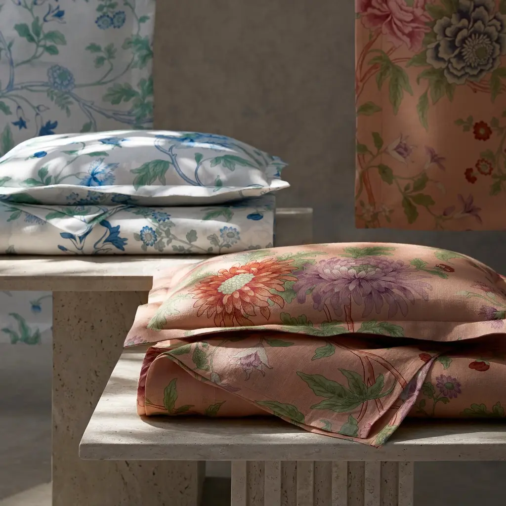 Breathtakingly vibrant, Simone's floral print is inspired by a 19th century English fabric remnant hand-selected from Schumacher's vast archive. Translated to our ultra soft Roman linen, the print takes on a multi-dimensional effect full of rich texture and shadow?perfect for top of bed styling or mixed in with our range of percales and embroideries.