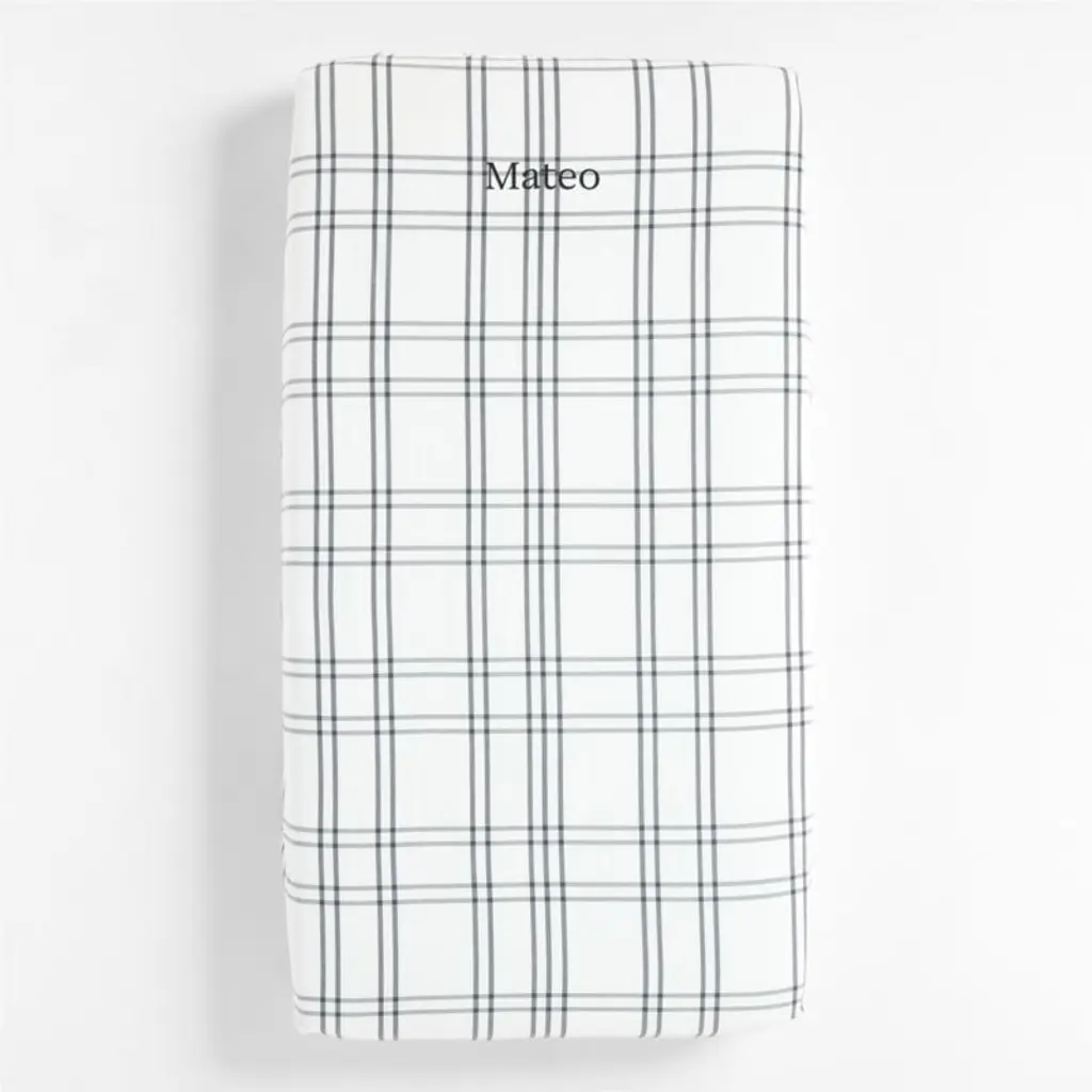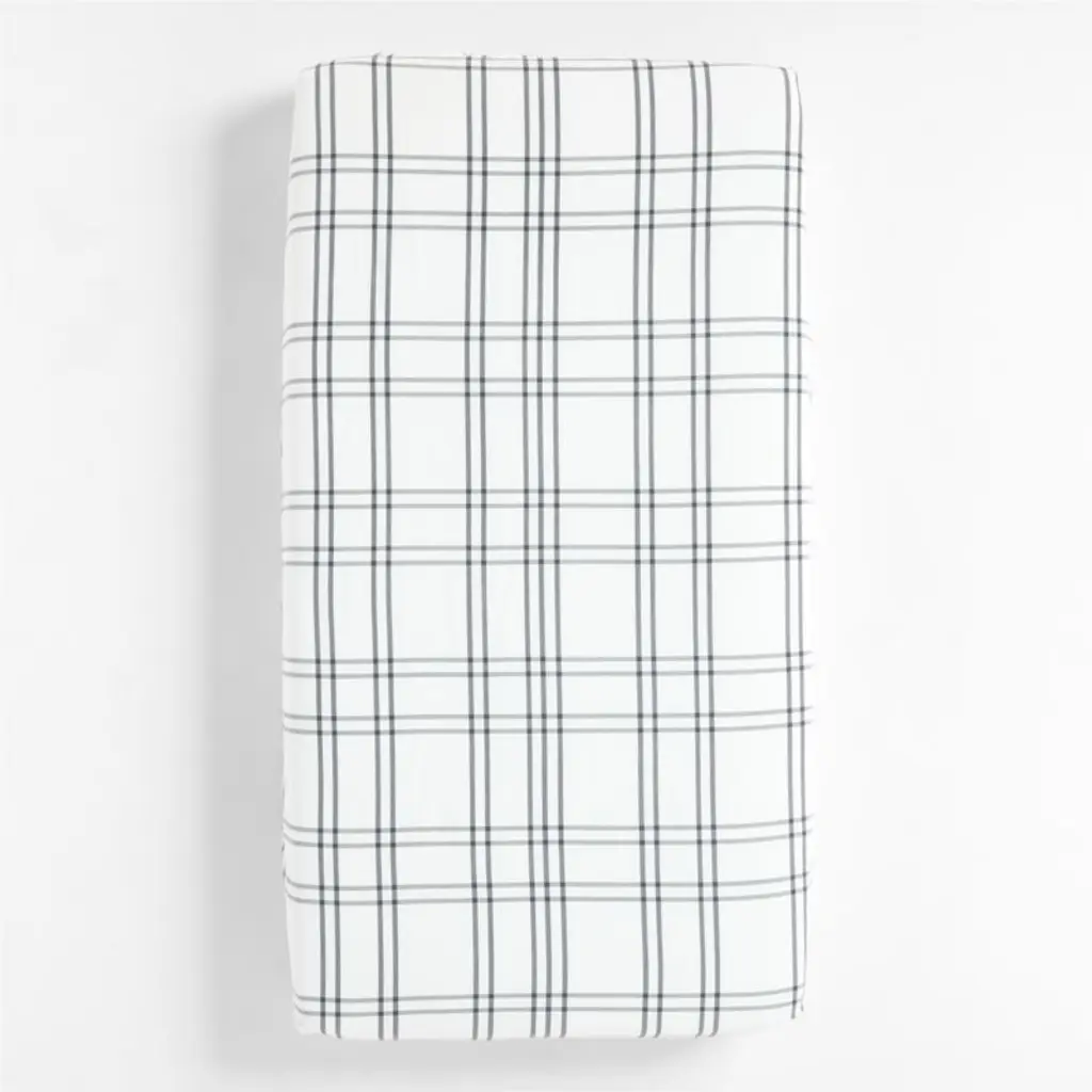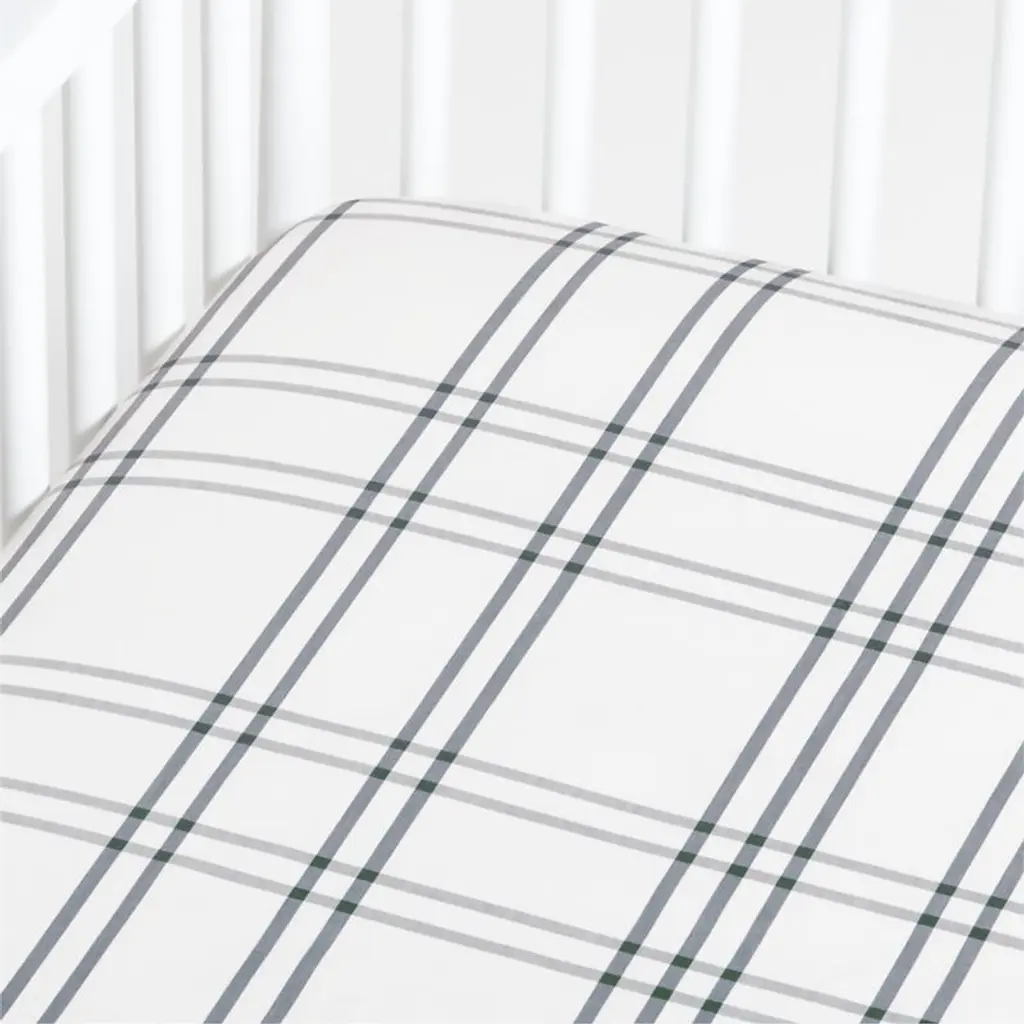 Sewn of pure organic cotton for superior comfort, beauty and strength, our Stax kids bedding adds a level of coziness that's hard to beat. Straight grey stripes crisscross over a bright white ground to form a grid pattern that keeps the nursery looking neat, tidy and always in line. Pair the crib sheet with the changing pad cover available in an array of mix-and-match colors. Get creative!
