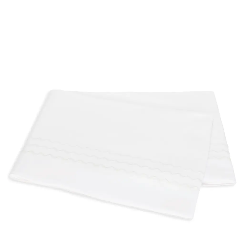Axel is a lively offering that features playful zigzag embroidery in a variety of color combinations. Woven from long-staple cotton for an exceptionally soft hand, Axel lends a spirited energy to the modern bed with its graphic stitched trim. Pair Matouk's Axel bed linens with the matching Sierra fitted sheet.