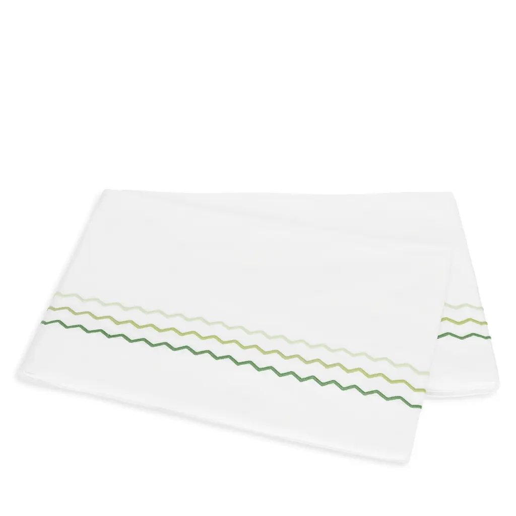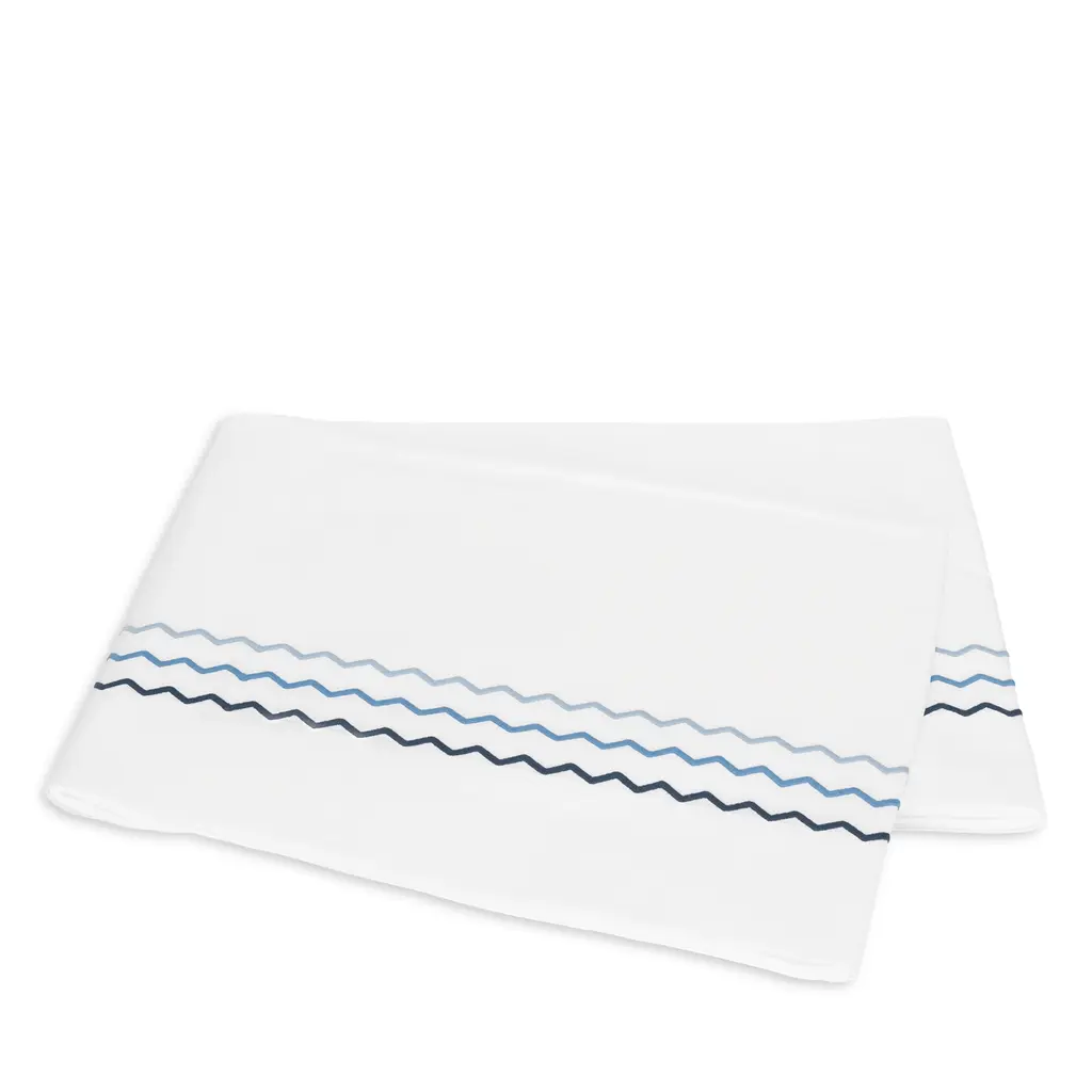 Axel is a lively offering that features playful zigzag embroidery in a variety of color combinations. Woven from long-staple cotton for an exceptionally soft hand, Axel lends a spirited energy to the modern bed with its graphic stitched trim. Pair Matouk's Axel bed linens with the matching Sierra fitted sheet.