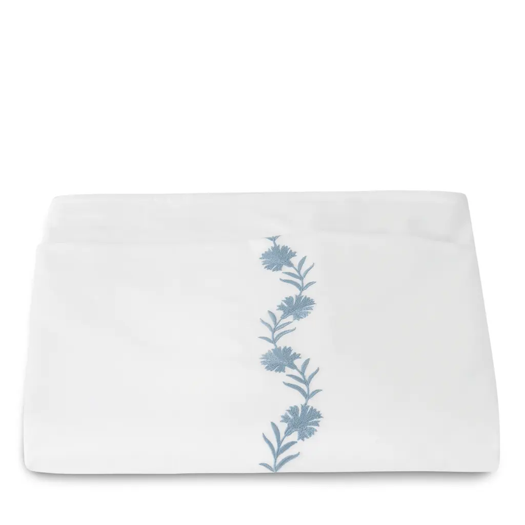 Adorned with a dancing frame of floral vines, Callista is Matouk's first decorative embroidery on the silky 500-thread count Bergamo Giza Egyptian cotton percale.