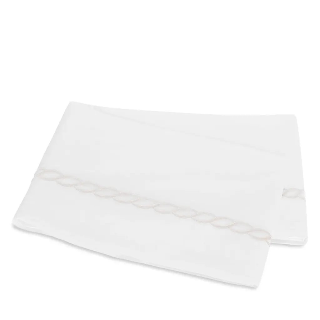 The Classic Chain collection offers an updated take on an iconic Greek motif. Embroidered on crisp, 520-thread count Ceylon cotton percale, this time-honored design comes in an array of shades and exudes a quintessentially classic appeal. Pair Matouk's Classic Chain bed linens with the matching Ceylon fitted sheet.