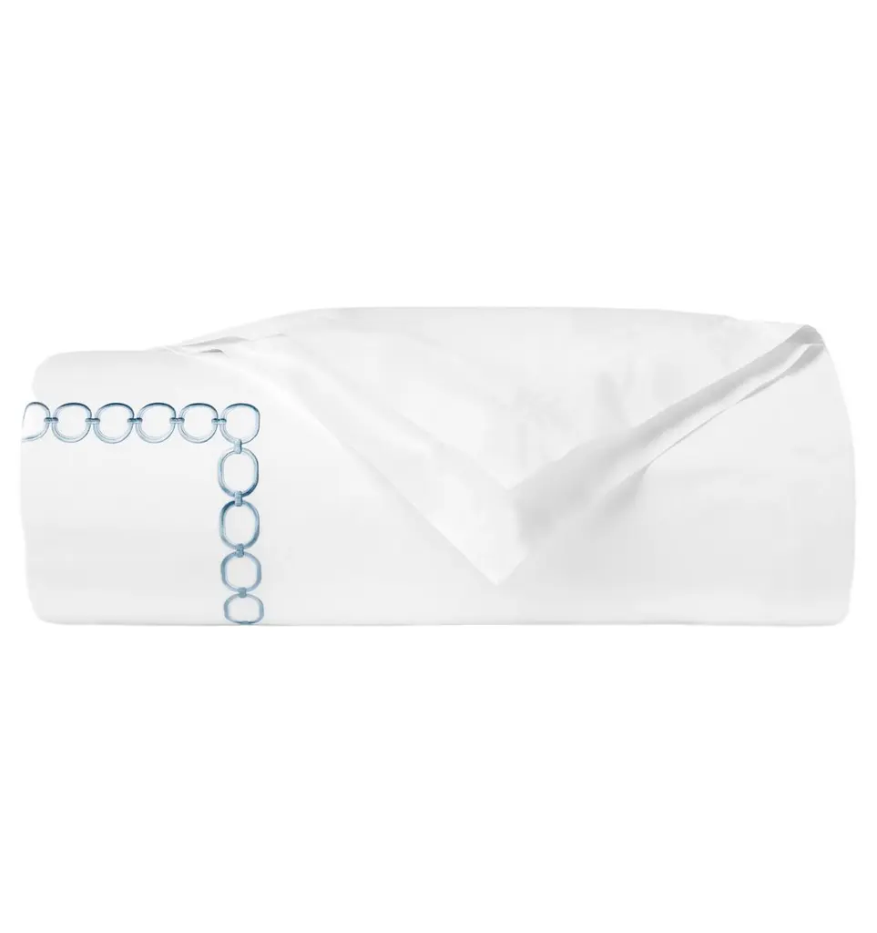 The Classic Chain collection offers an updated take on an iconic Greek motif. Embroidered on crisp, 520-thread count Ceylon cotton percale, this time-honored design comes in an array of shades and exudes a quintessentially classic appeal. Pair Matouk's Classic Chain bed linens with the matching Ceylon fitted sheet.