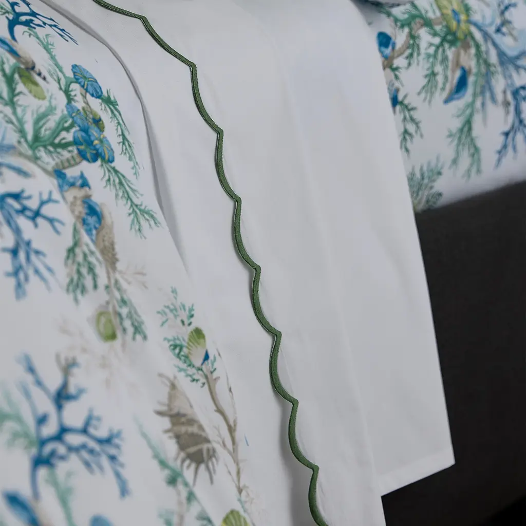 A Matouk classic is reimagined on their crisp 520-thread count Ceylon sheeting. Available in an array of vibrant shades, the Dakota Collection's classic scalloped edge adds a colorful finish and effortless charm.