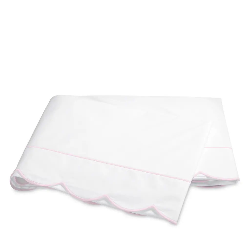 A Matouk classic is reimagined on their crisp 520-thread count Ceylon sheeting. Available in an array of vibrant shades, Dakota's classic scallop adds a colorful edge and effortless charm.