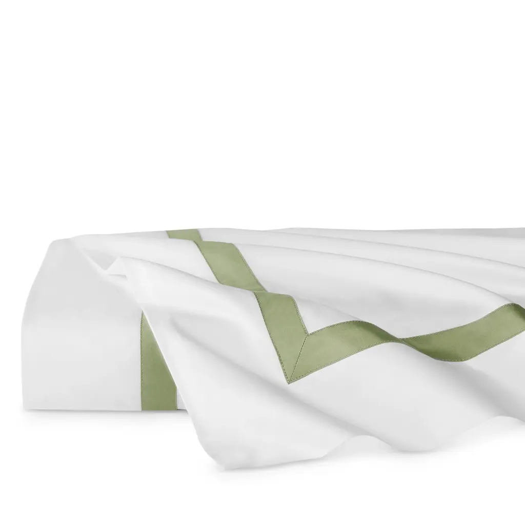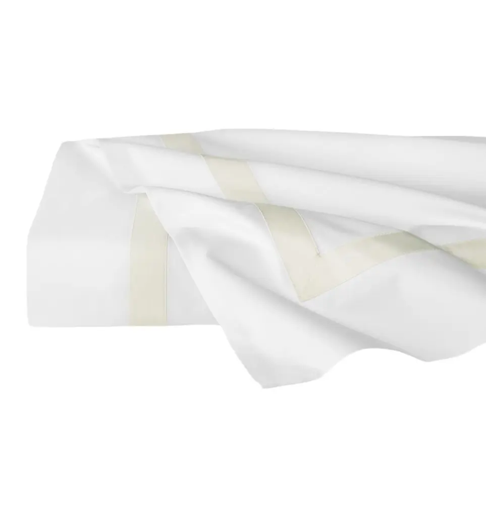 The understated sophistication of Estate's crisp white, Italian-woven long-staple cotton base is an immaculate backdrop for lustrous sateen appliqué detail, beautifully bordering this collection to create a sense of tailored elegance.