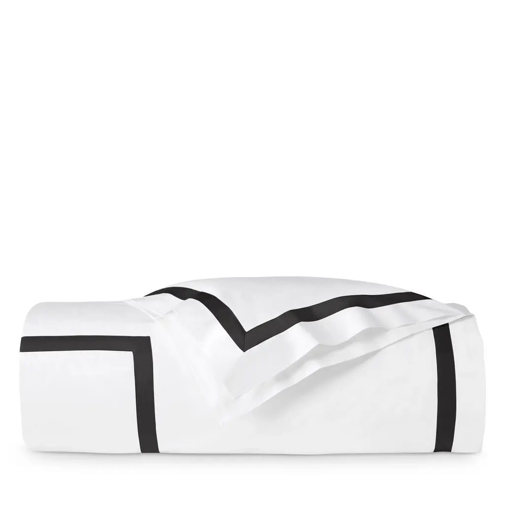 The understated sophistication of Estate's crisp white, Italian-woven long-staple cotton base is an immaculate backdrop for lustrous sateen appliqué detail, beautifully bordering this collection to create a sense of tailored elegance.