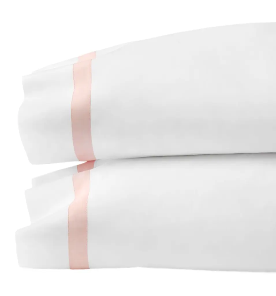 The understated sophistication of Estate's crisp white, Italian-woven long-staple cotton base is an immaculate backdrop for lustrous sateen appliqué detail, beautifully bordering this collection to create a sense of tailored elegance.