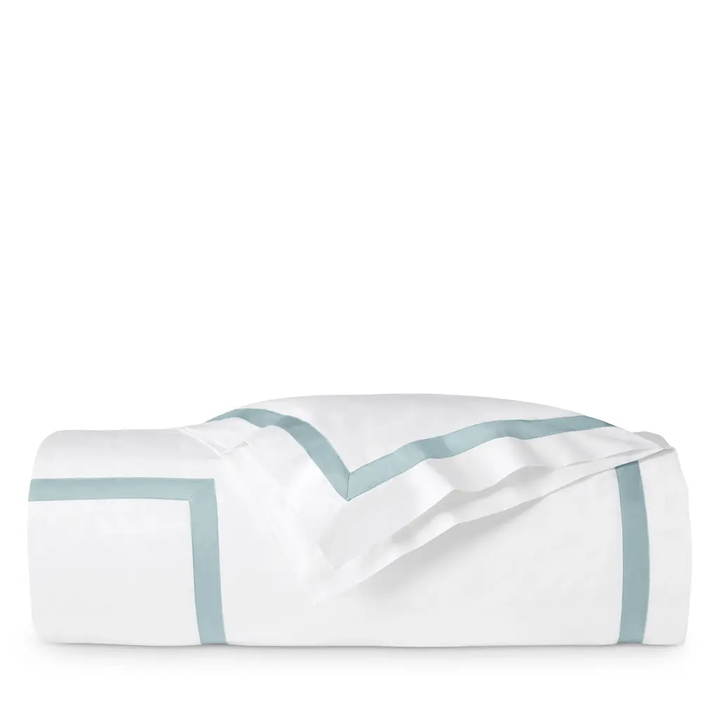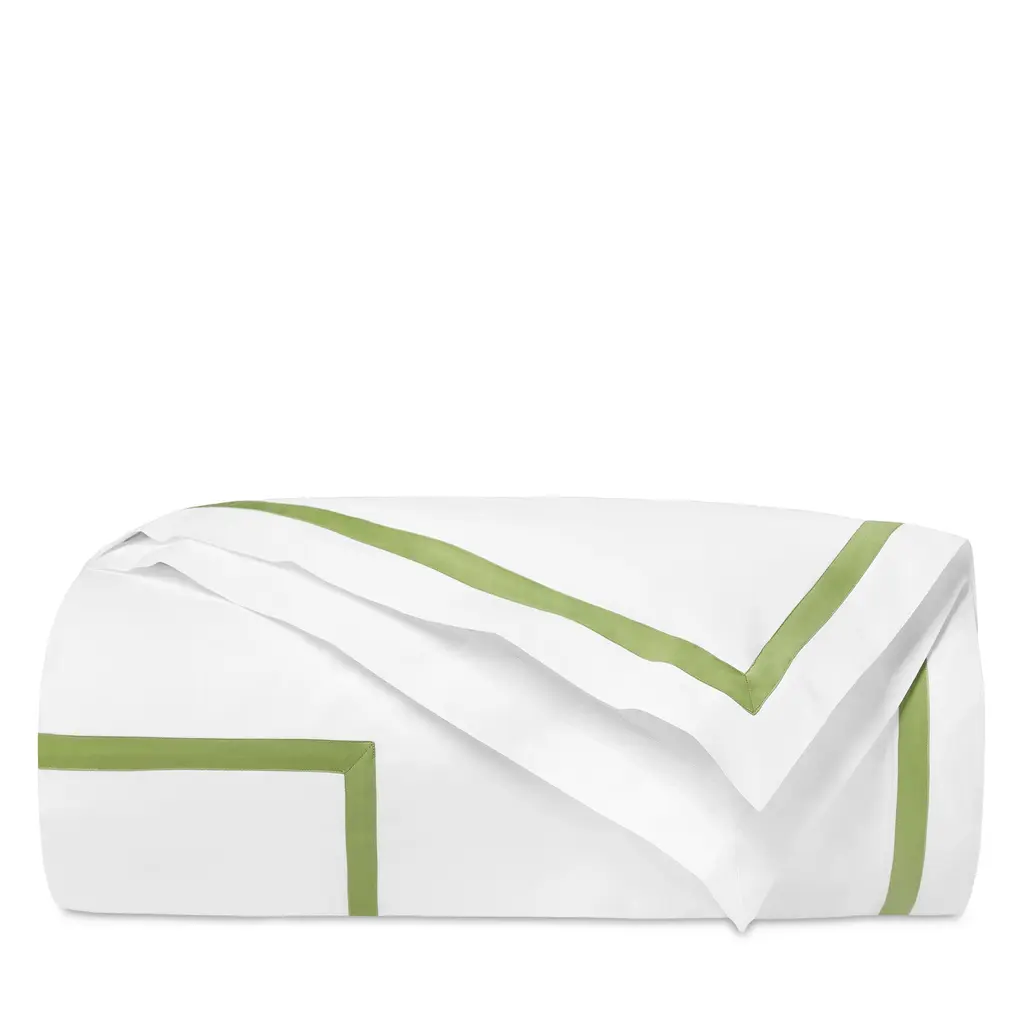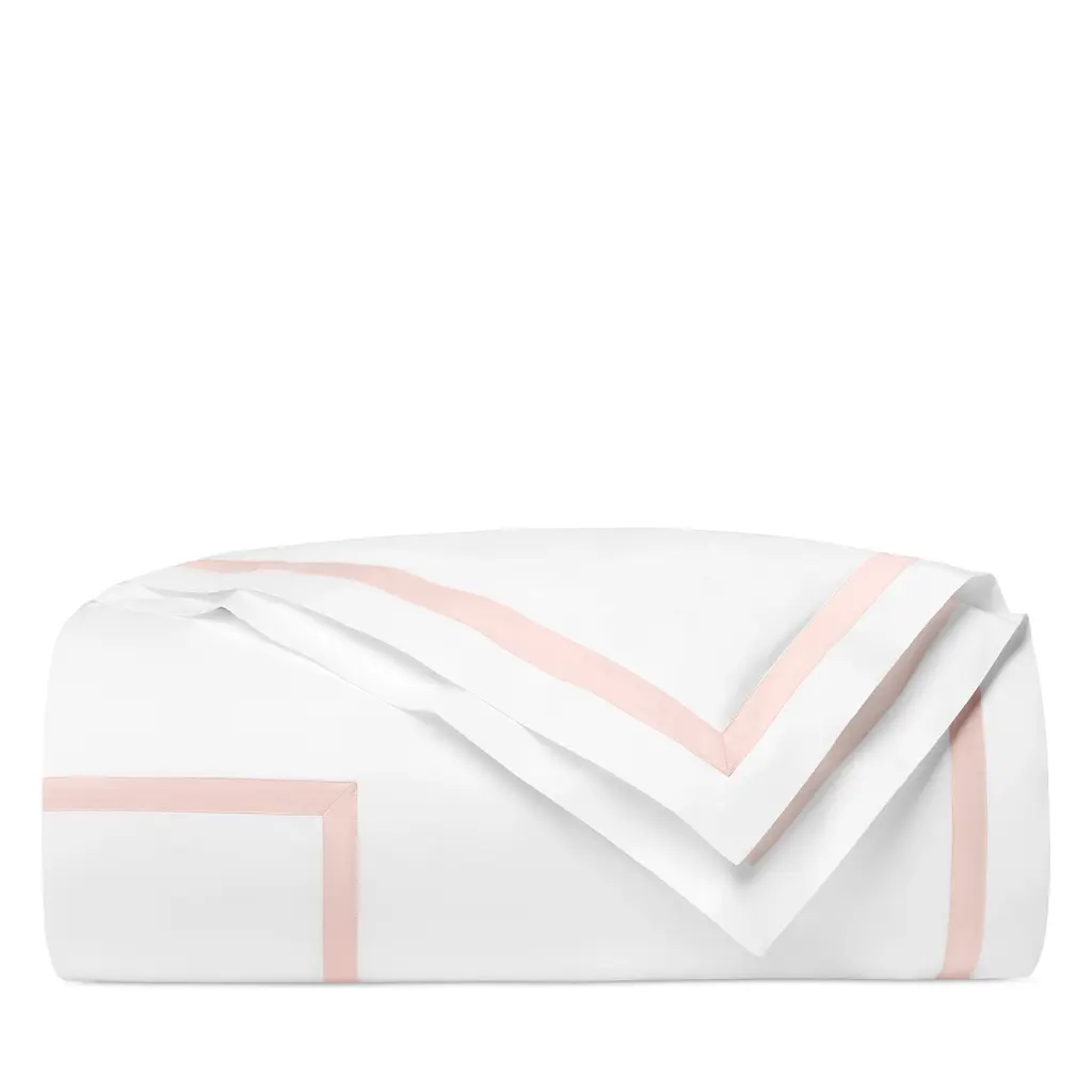 The understated sophistication of Estate's crisp white, Italian-woven long-staple cotton base is an immaculate backdrop for lustrous sateen appliqué detail, beautifully bordering these sheets to create a sense of tailored elegance.