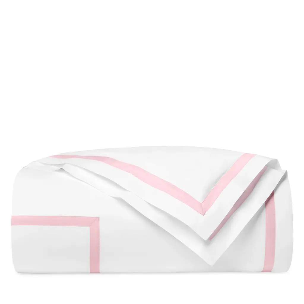 The understated sophistication of Estate's crisp white, Italian-woven long-staple cotton base is an immaculate backdrop for lustrous sateen appliqué detail, beautifully bordering these sheets to create a sense of tailored elegance.