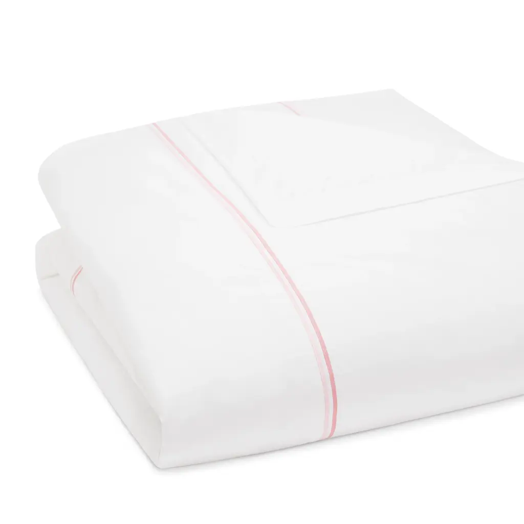 The understated sophistication of Estate's crisp white, Italian-woven long-staple cotton base is an immaculate backdrop for lustrous sateen appliqué detail, beautifully bordering these sheets to create a sense of tailored elegance.