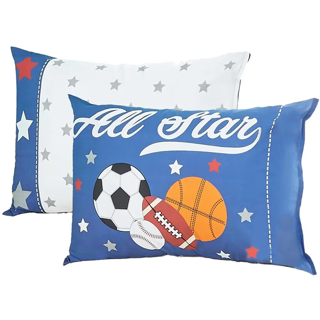 Everyday Kids 3-piece Toddler Bedding Set - Jungle Sports - Soft 100% Cotton Percale Fitted Sheet, Flat Sheet & Pillowcase For Boys