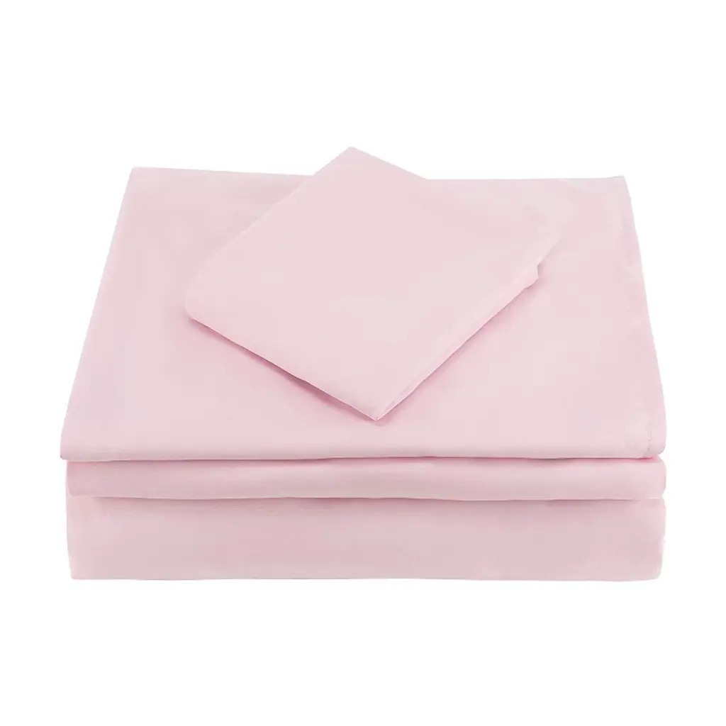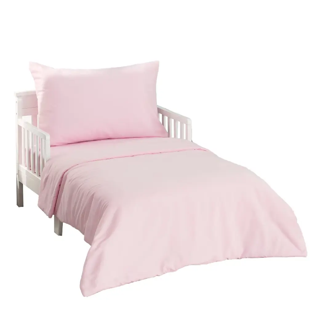 Everyday Kids 4 Piece Toddler Bedding Set - Includes Comforter, Flat Sheet, Fitted Sheet And Reversible Pillowcase - Solid Pink