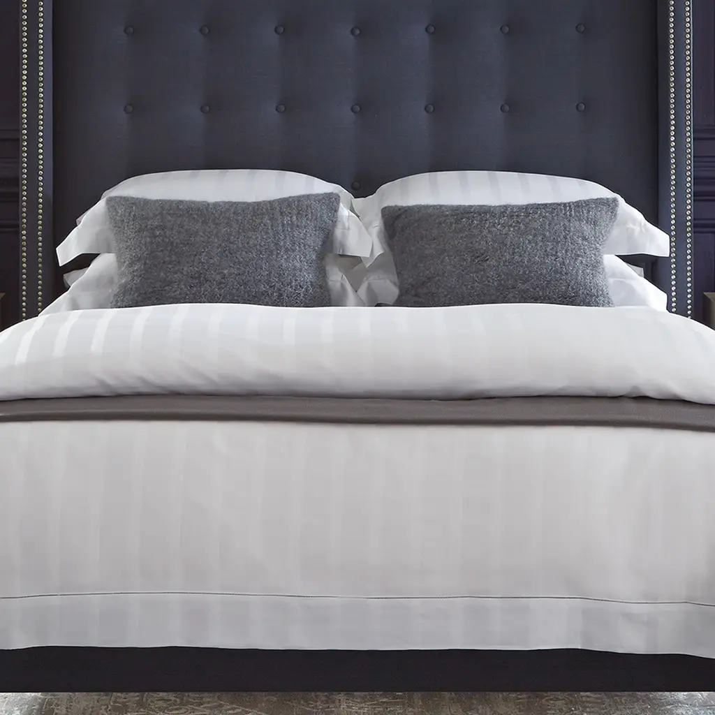 Of all the bedding SFERRA makes, Giza 45® may be the most impressive and most exclusive. Crafted from special yarns that are spun from a genus of Egyptian cotton commonly known as "The Queen of the Nile", Giza bedding is the ultimate of luxury linens. This prized cotton is spun and woven in Italy to an extraordinarily rich cloth, one so smooth and sleek and utterly soft, it could be mistaken for a silk. Here, the sateen jacquard is in a dobby stripe to create a bed of pure indulgence, perfectly tailored and finished with the hemstitched flanges.