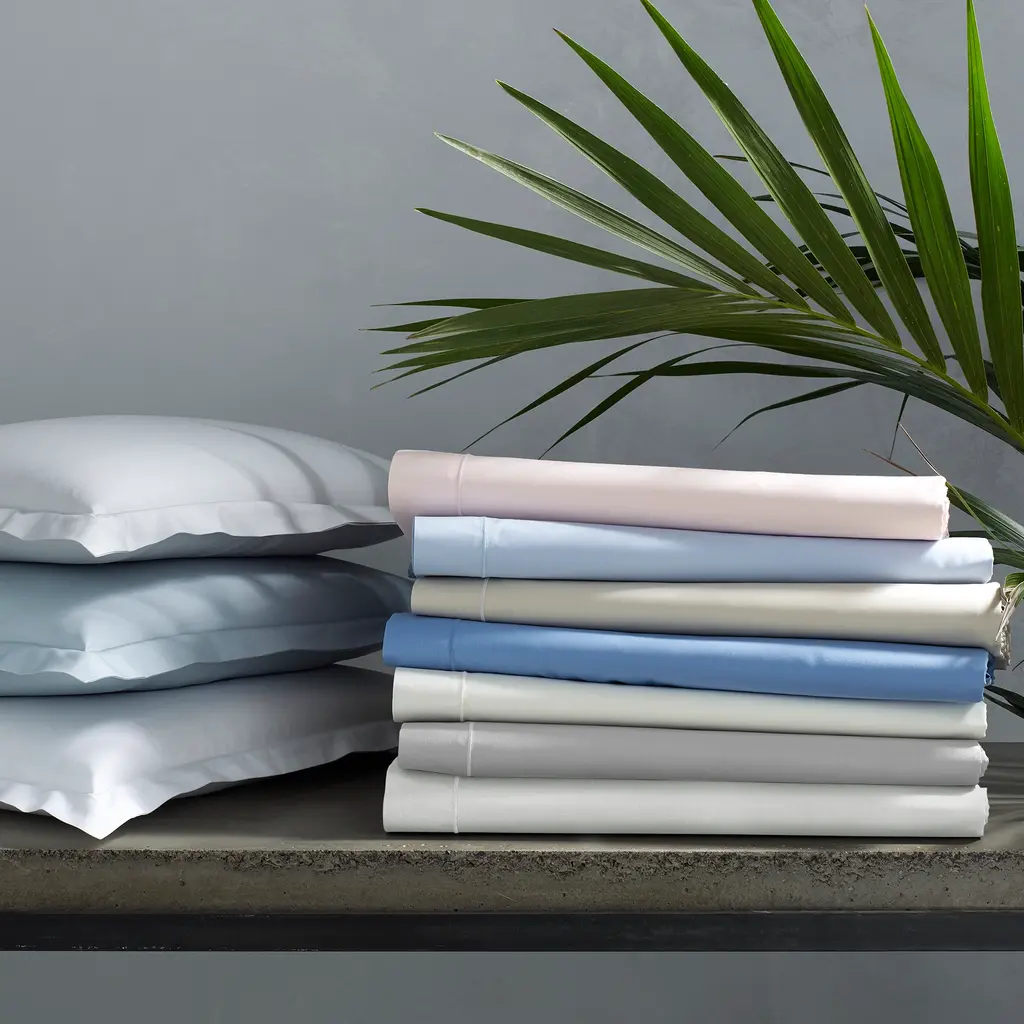 Elegant and super-soft percale sheets with a classic satin stitch, crafted from 500-thread count Egyptian cotton woven in Italy.