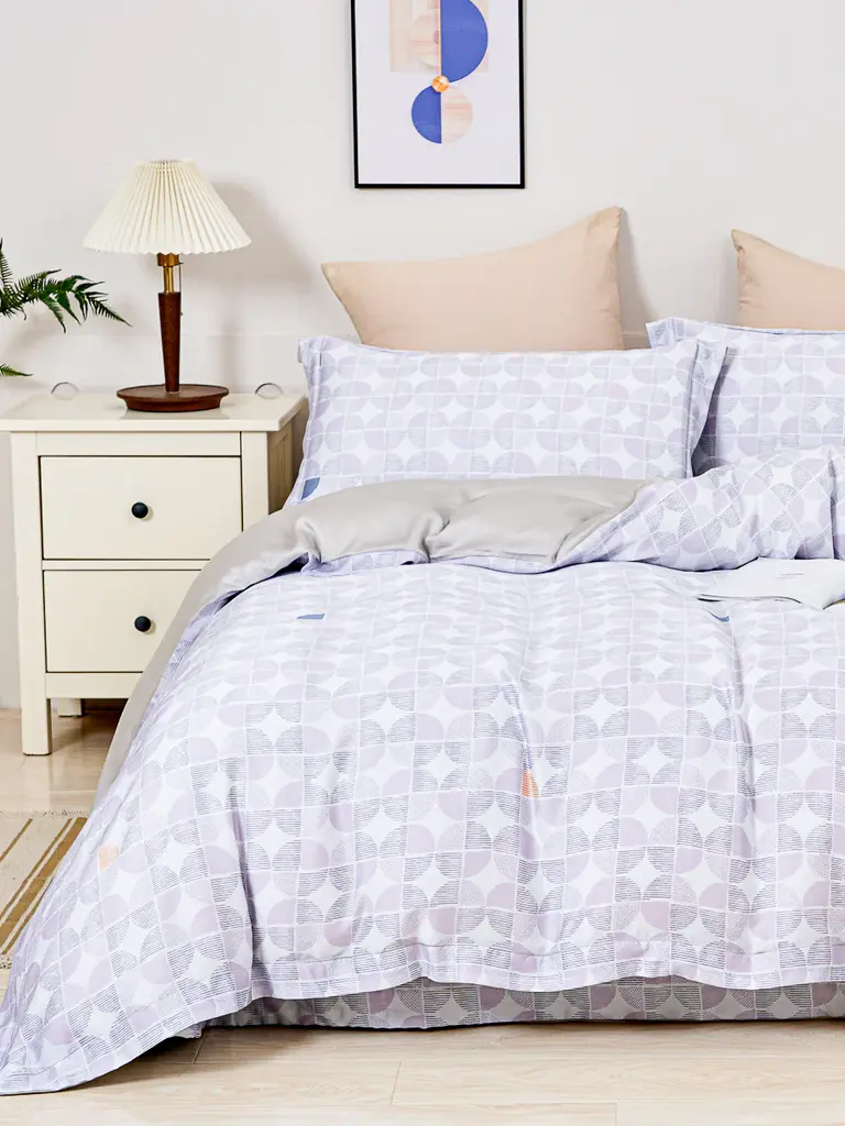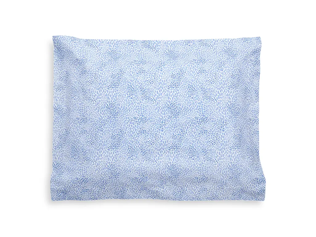 Crafted in soft, luxurious Egyptian cotton, the Nikita sheet collection by Lulu DK for Matouk features a small, abstract spotted print in pastel shades of blue and green, finished with a classic cuff on the flat sheet and pillowcases.