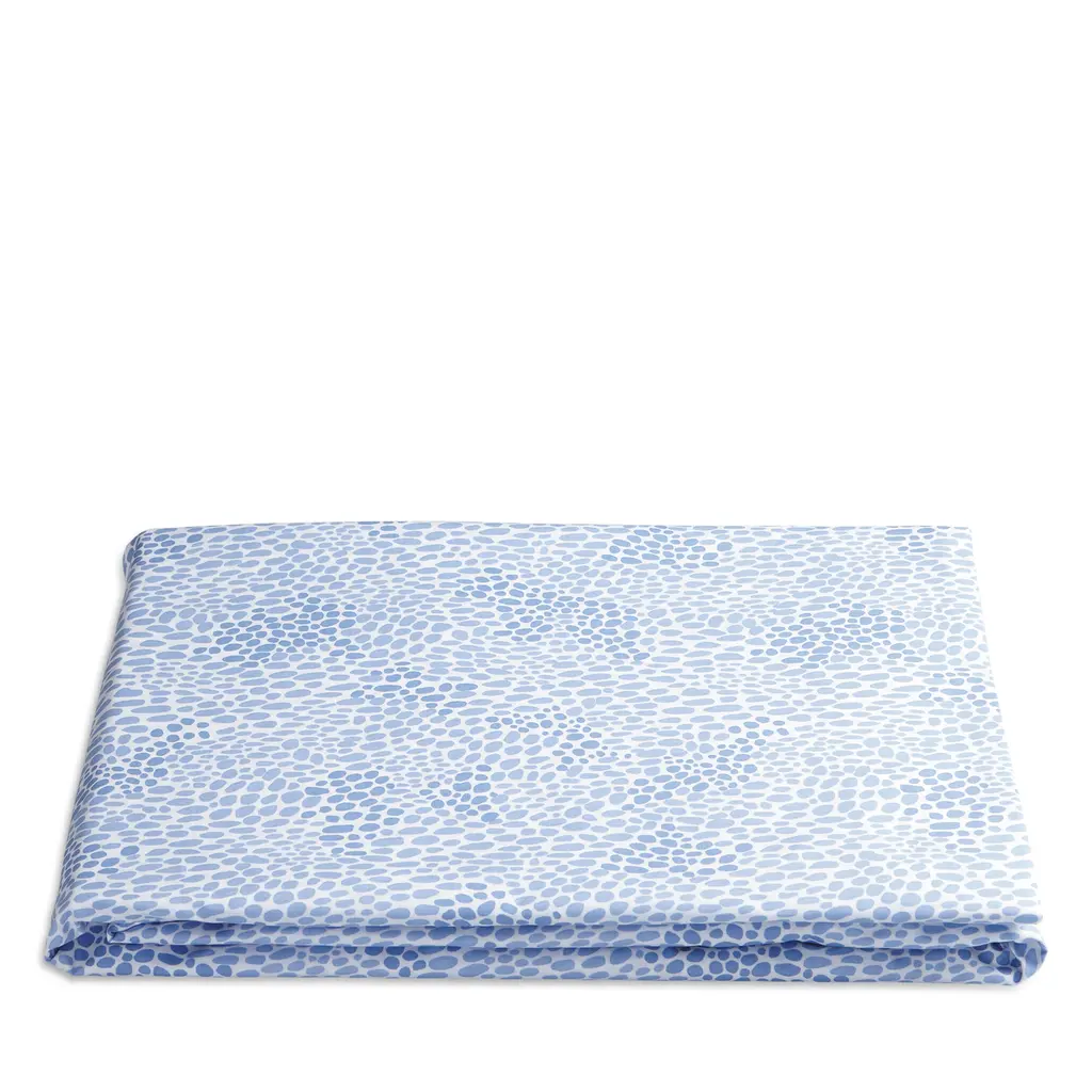 Crafted in soft, luxurious Egyptian cotton, the Nikita sheet collection by Lulu DK for Matouk features a small, abstract spotted print in pastel shades of blue and green, finished with a classic cuff on the flat sheet and pillowcases.