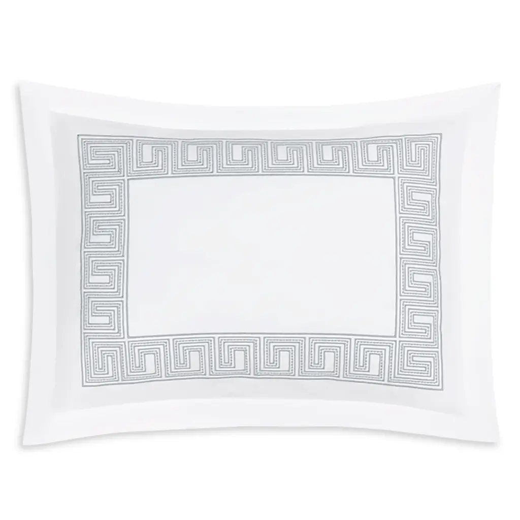 Inspired by an intricately beaded Schumacher tape, Matouk's boldly embroidered Ophelia collection embodies a traditional Greek key pattern with a bespoke sensibility. In 520-thread count Ceylon sheeting, it's a playful, exuberant take on a traditional motif. Pair Matouk's Ophelia bed linens with the matching Ceylon Fitted Sheet.
