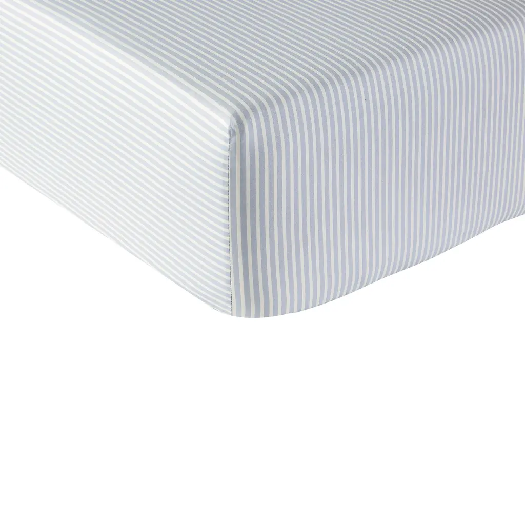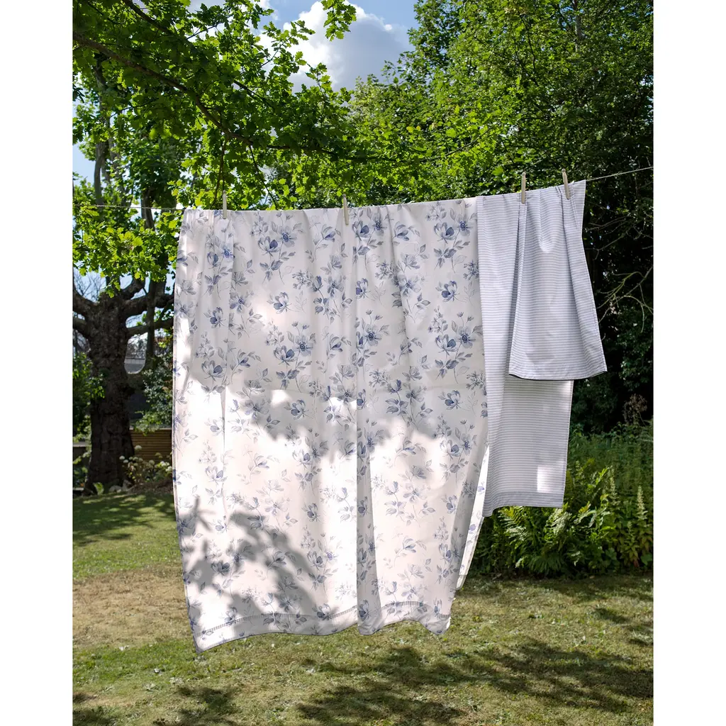 Passé Présent, meaning Past Present in English, offers a modern take on classic blue-on-white styling with flowers coordinated with a fine gauge stripe. Inspired by the French Riviera.