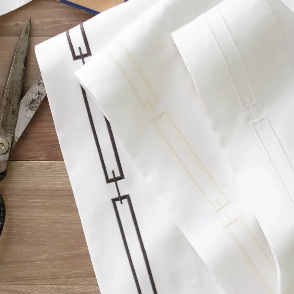 For the traditional or the modern home, Stanza complements a variety of styles. Stanza is a contemporary geometric link embroidery design that adds color to your bed in a perfectly tailored way.