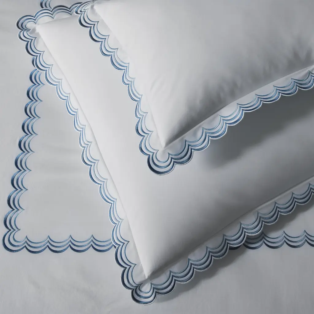 Stella Scalloped Embroidered Flat Sheet, Full/queen