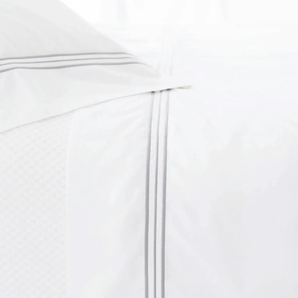 A simple, three-lined pattern adds a touch of refinement to this classic white, 400 thread-count cotton flat sheet.