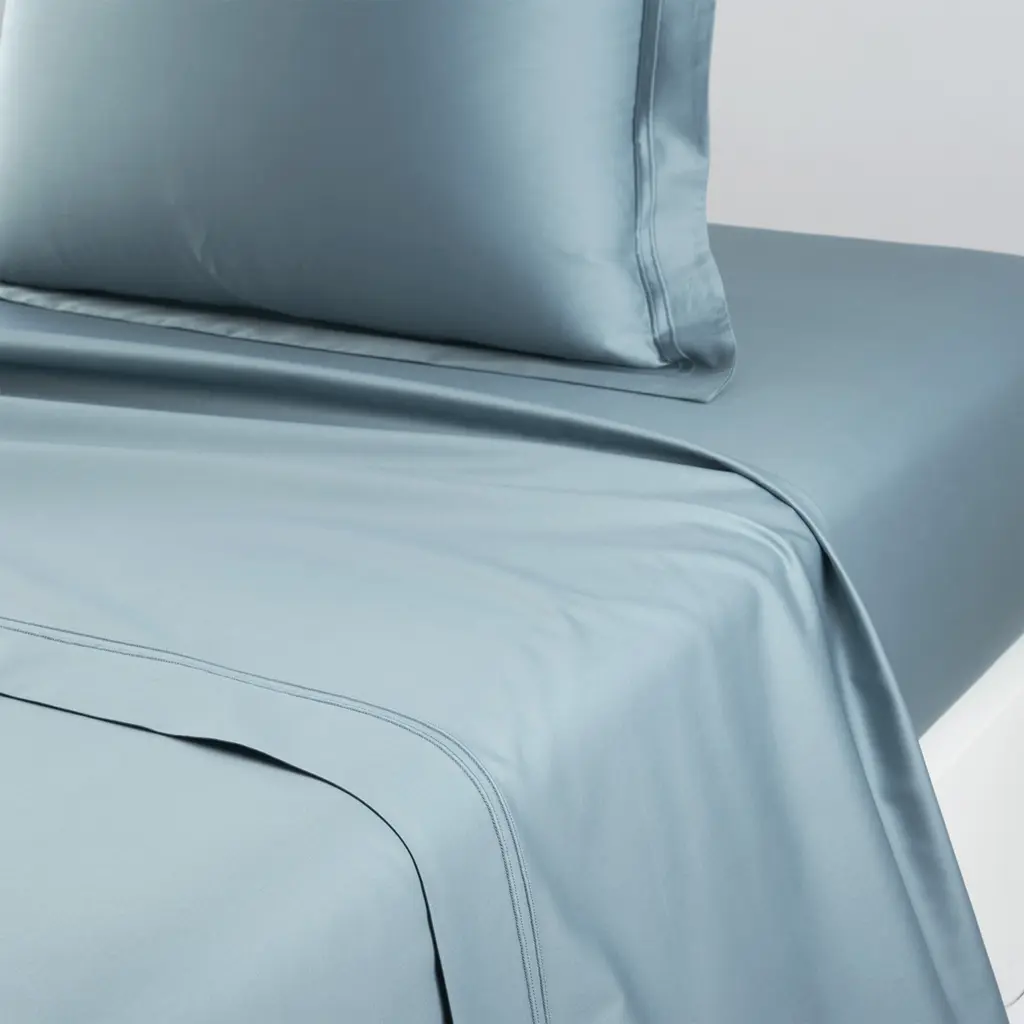 The Triomphe sheet collection from Yves Delorme is cut from fine Egyptian combed cotton with a luxurious sateen finish. Each piece features a simple yet decorative raised double-saddle stitched border.