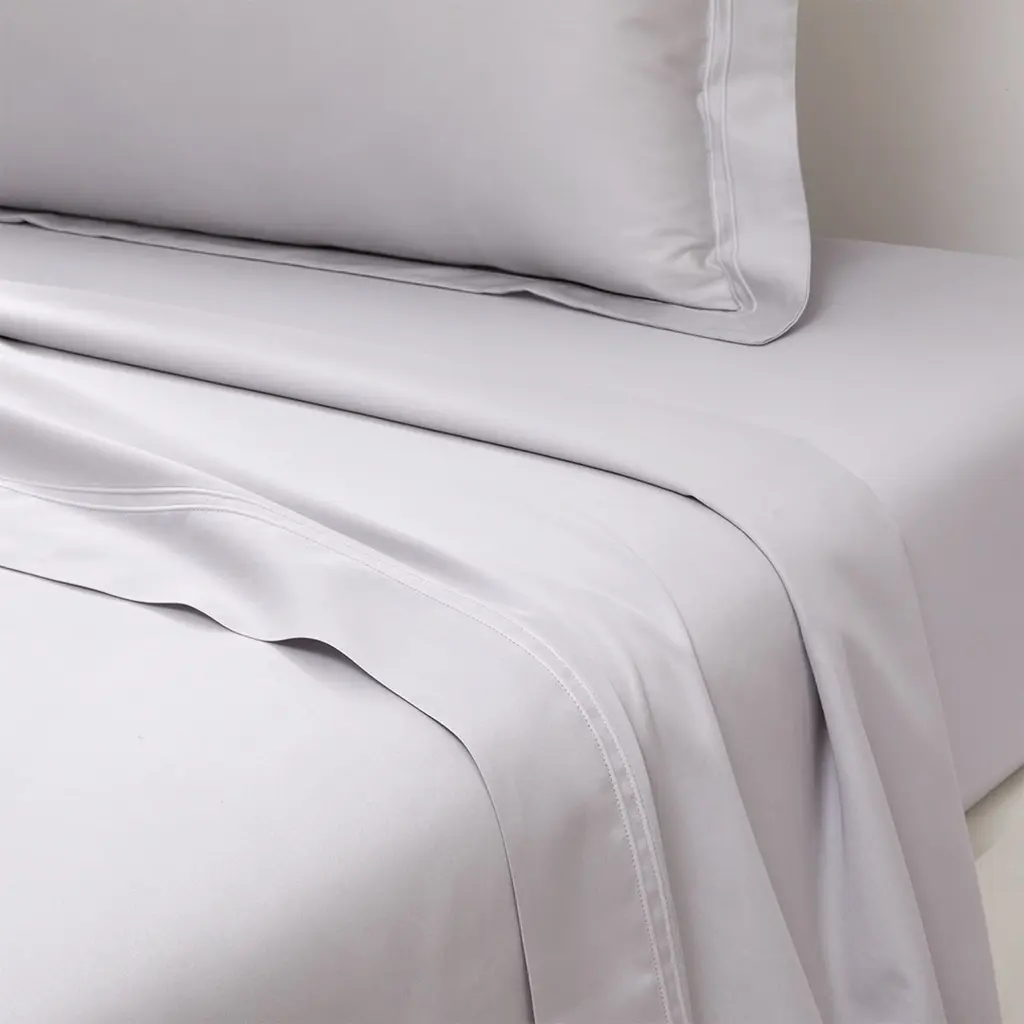 The Triomphe sheet collection from Yves Delorme is cut from fine Egyptian combed cotton with a luxurious sateen finish. Each piece features a simple yet decorative raised double-saddle stitched border.