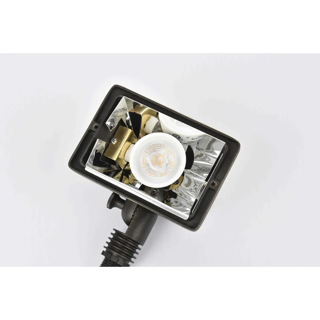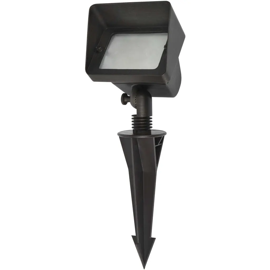 Enhance your outdoor space with our premium 12-volt cast brass spotlights, designed for both durability and style. Featuring a sleek dark bronze finish, these spotlights blend seamlessly into any landscape while providing soft, even illumination through a frosted glass lens. The modern rectangular shade, paired with an adjustable knob, allows you to direct light precisely where its needed, perfect for highlighting garden features or architectural details. Built to last, these spotlights are easy to install with the included 8-inch plastic mounting stake and 3-foot pre-wired cable, offering flexibility in placement. Compatible with MR16 halogen bulbs up to 35 watts (not included), this low-voltage lighting solution delivers customizable brightness and long-lasting performance, making it the ideal choice for any outdoor setting.