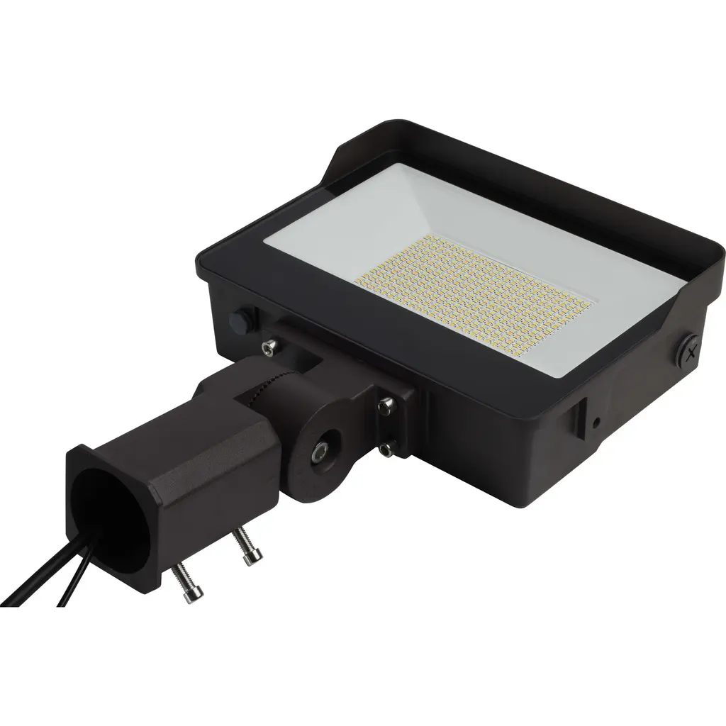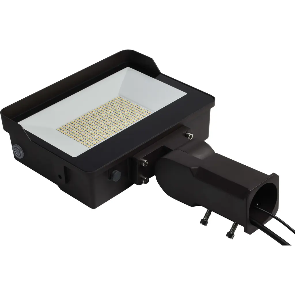 LED Tempered Glass Flood Light with Bypassable Photocell; CCT Selectable 3K/4K/5K; Wattage Adjustable 100W/125W/150W; ColorQuick and PowerQuick Technology; Bronze Finish
